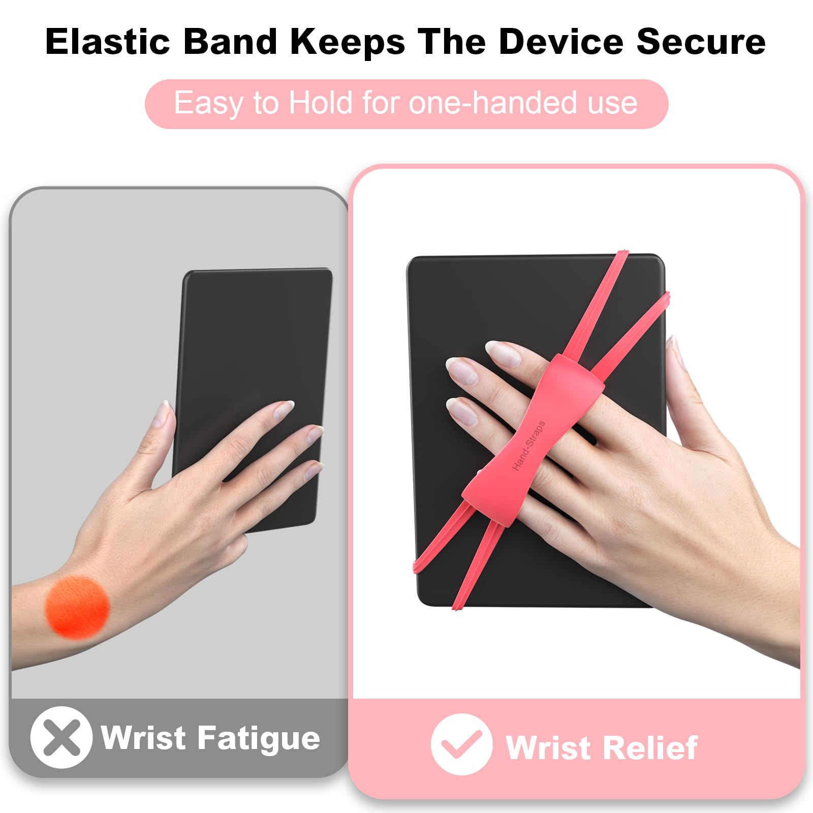 ✅ Universal 4-8" Grip for Kindle: 2 Pack kindle strap holder for hand effortlessly secure any device (4-8") with or without a protective case. Engineered kindle holder with stretchable silicone bands with anti-slip design, it adapts to Kindles, phones, tablets, and e-readers while protecting screens from scratches.