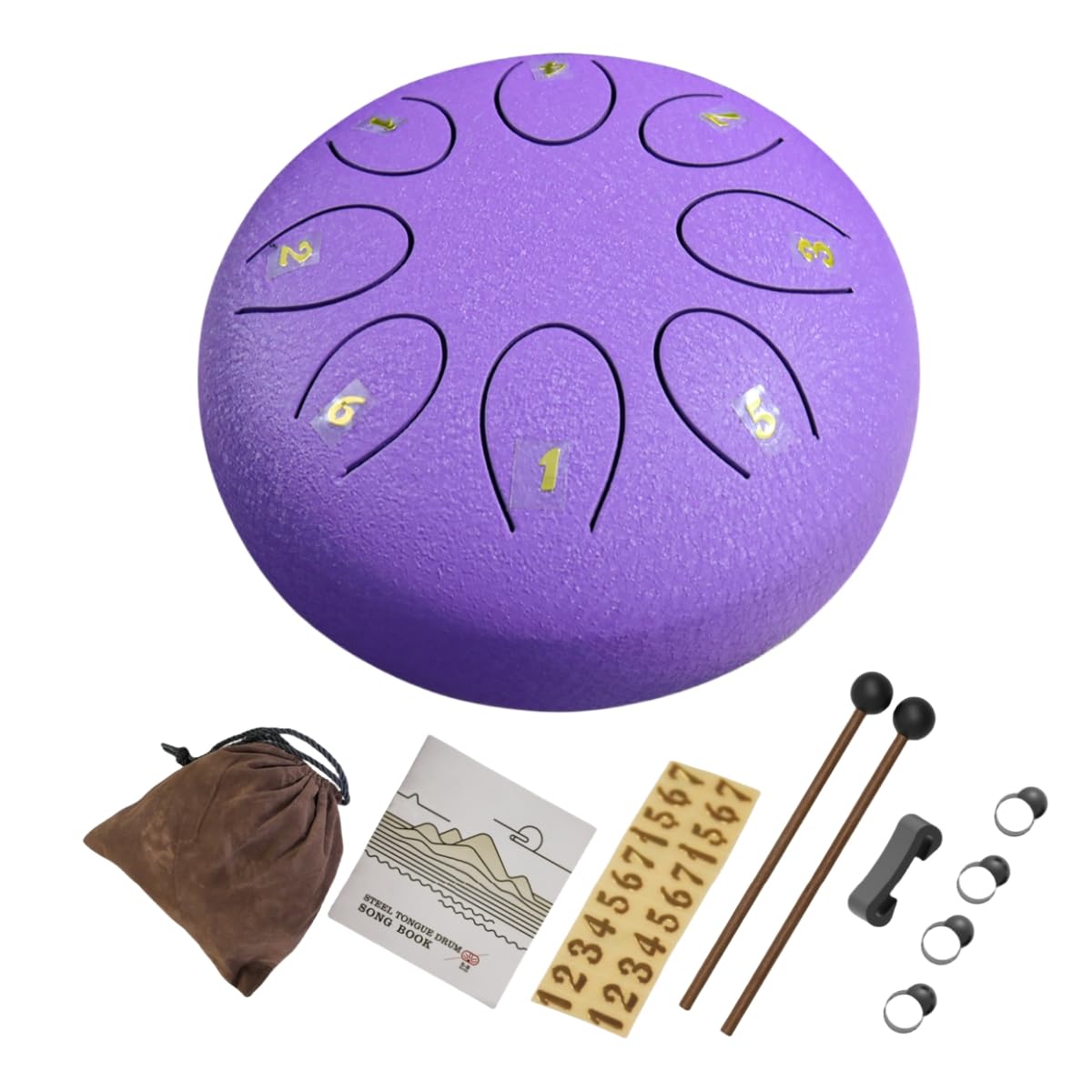 The Zen tone drum features 8 distinct tones, offering a broad sound spectrum that allows for a variety of musical expression. It can be played using the provided drum mallets or simply with your hands, making it accessible for all. The included note chart simplifies the learning process, especially for beginners, enabling them to pick up and play with ease. The drum also includes a convenient carry-on bag, ensuring easy portability wherever your musical journey takes you.
