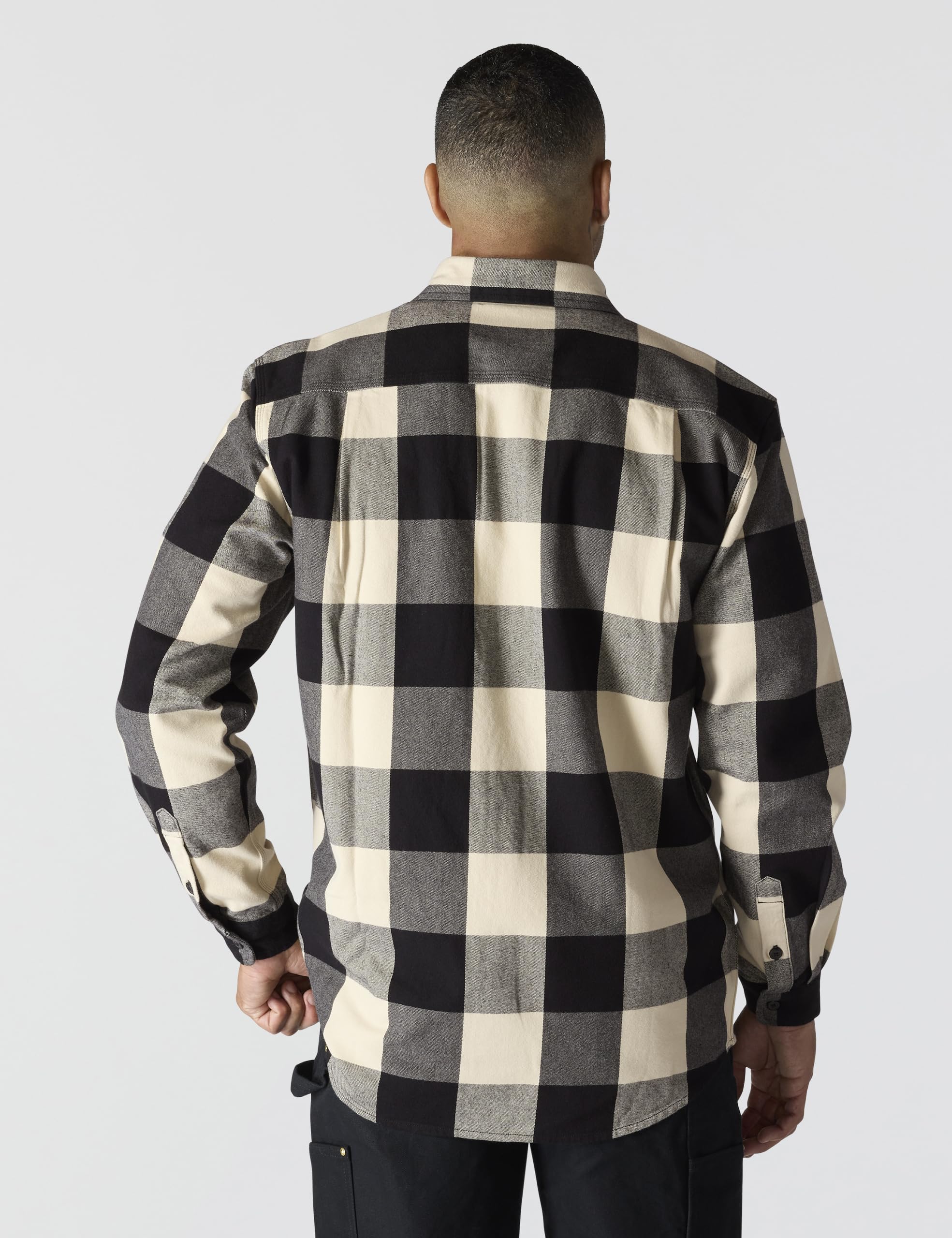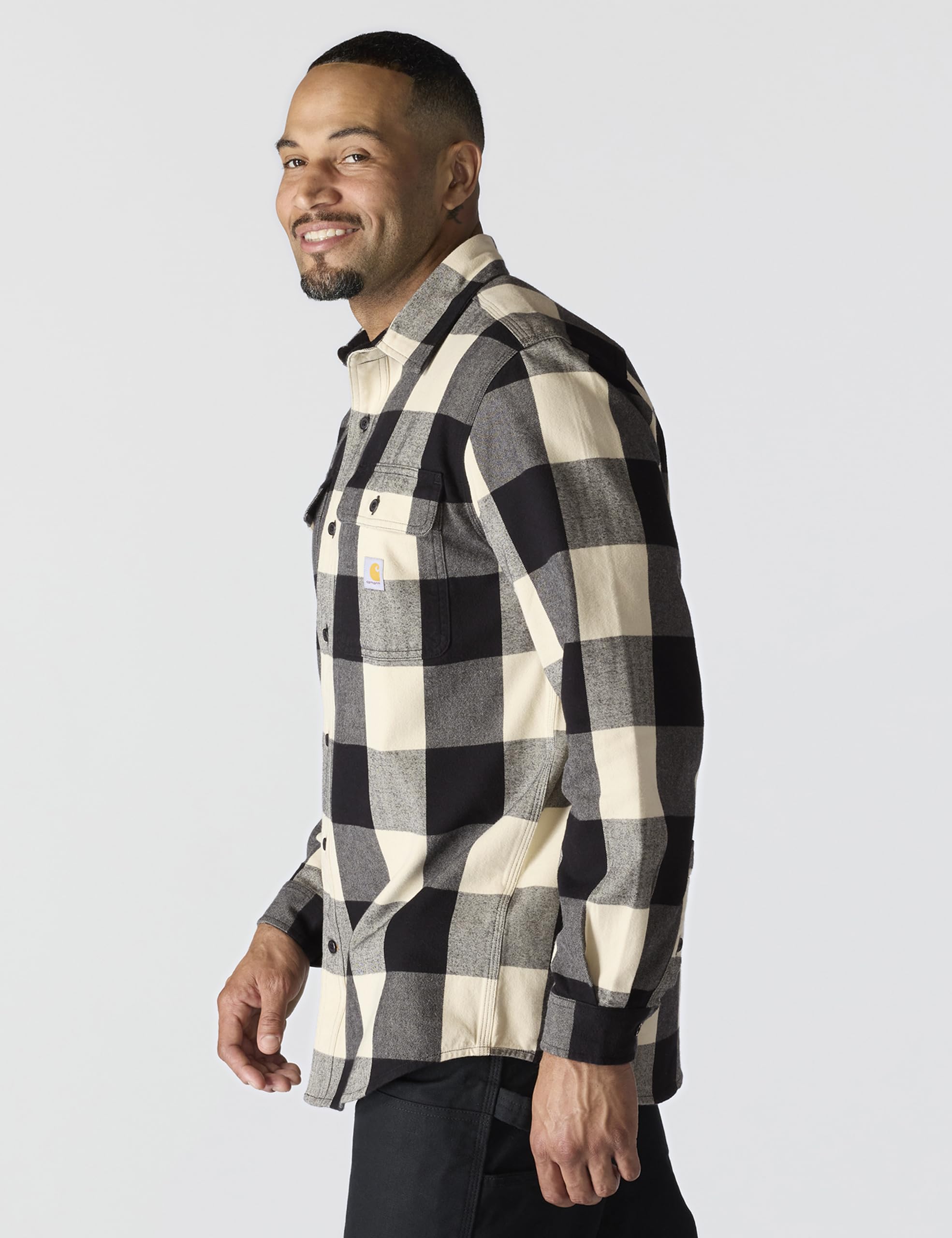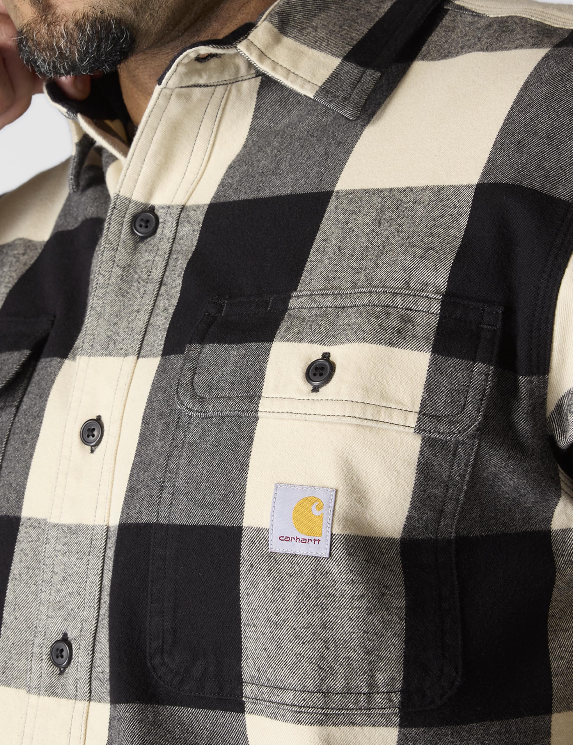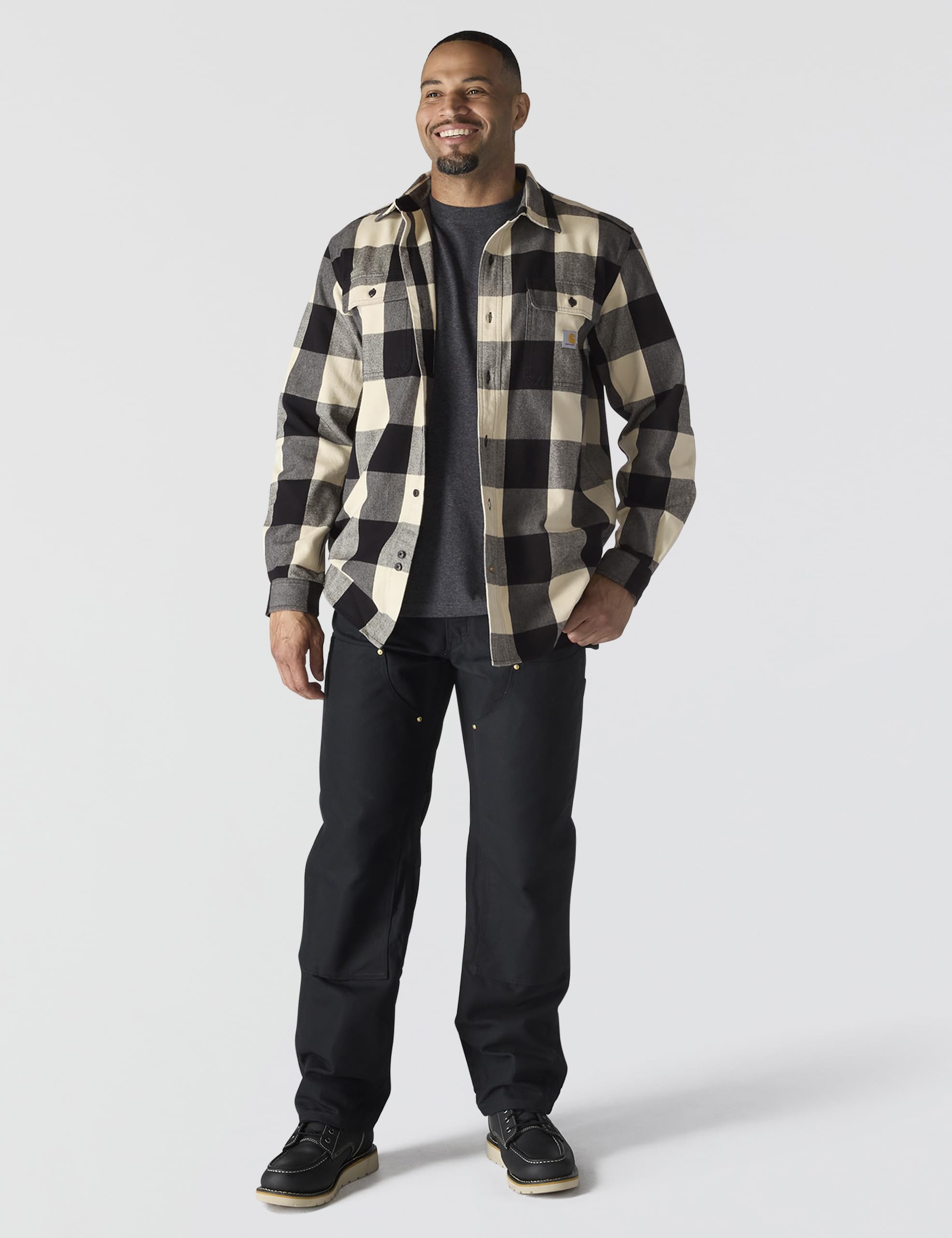 Description A workwear classic, this men's Carhartt flannel plaid shirt is highly comfortable and durable. It's made in heavyweight cotton with triple-stitched main seams to get the job done. A loose fit gives you plenty of room to move.