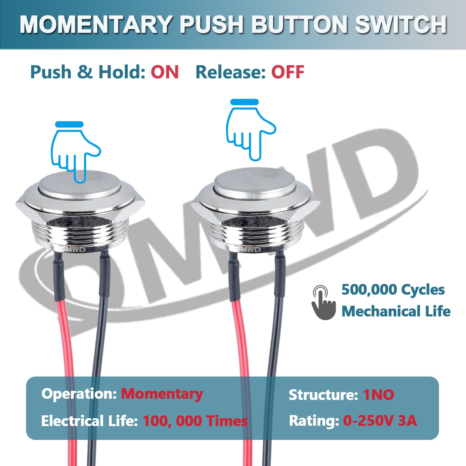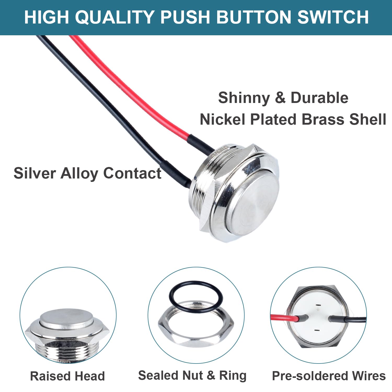 Momentary Switch: Press the button and hold--ON, Release--OFF; Head Type: High Round Head