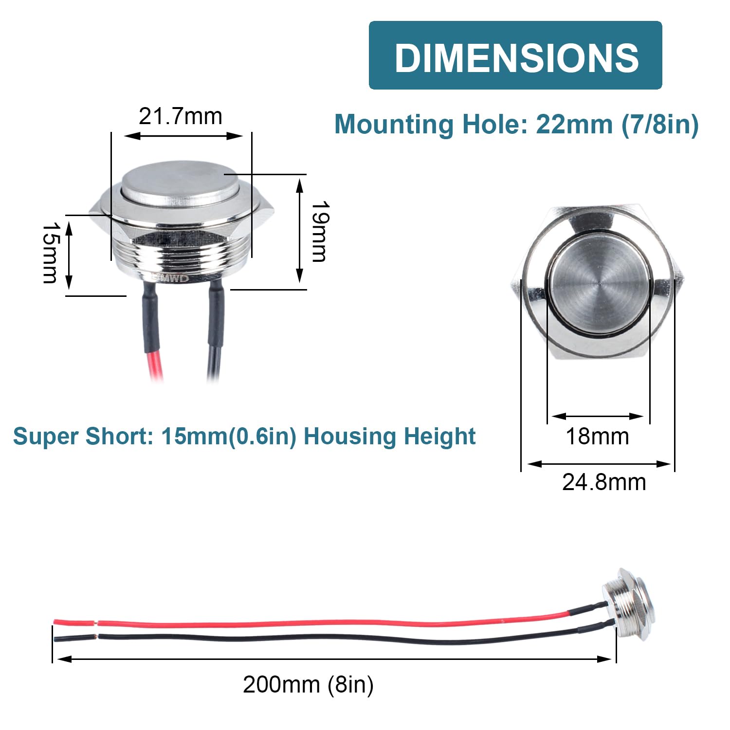 Mounting Hole: 22mm(7/8"); Cable Length: 15cm(0.59"); Structure: 1NO; Volt: 0-220V