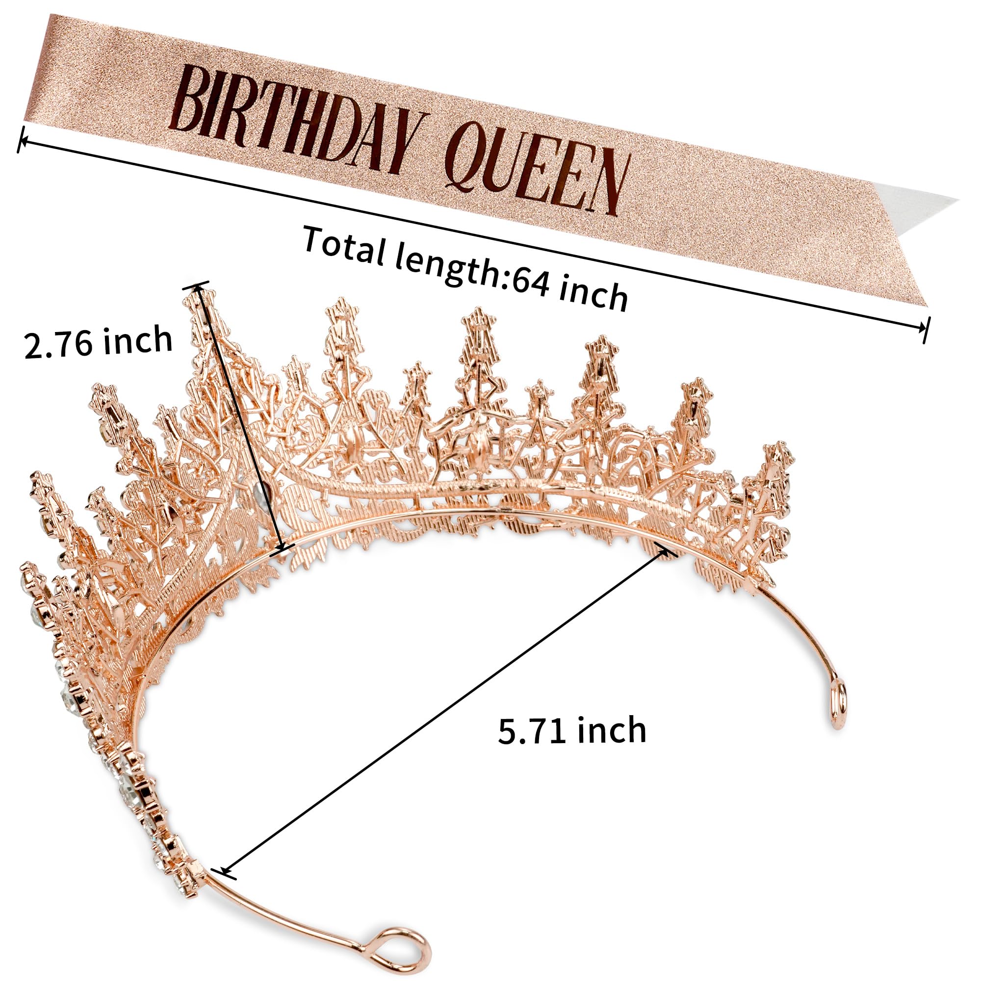 ONE SIZE FITS MOST: Each "BIRTHDAY QUEEN" belt measures 3.74 inches (9.5cm) wide, with a total length of 64 inches (162cm) and a wearing length of 32 inches (81cm). Crown measures approximately 2.76 inches (7cm) tall and approximately 5.71 inches (14.5cm) in diameter. Specially designed to fit women's head size, suitable for adults, perfectly fit your charming hairstyle.