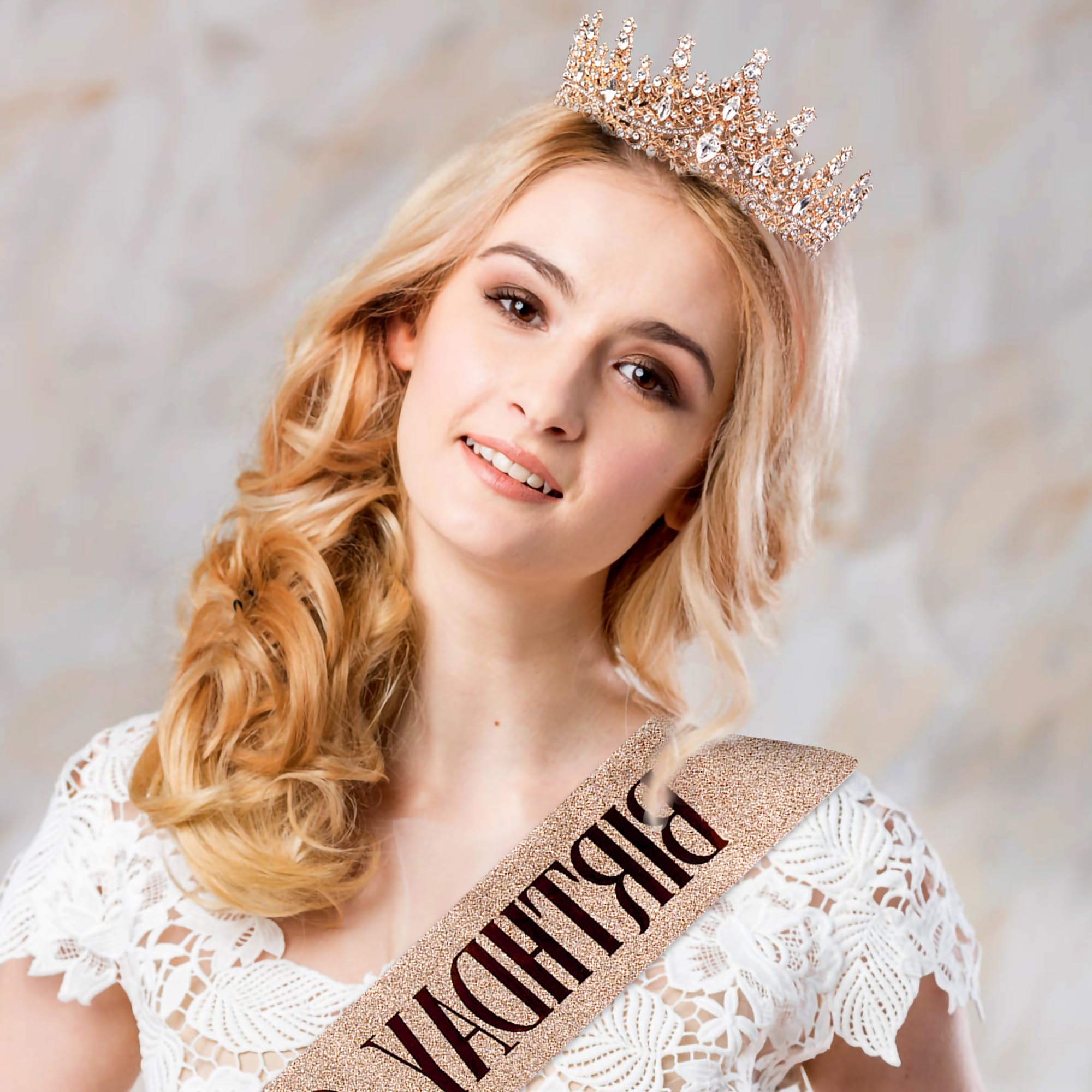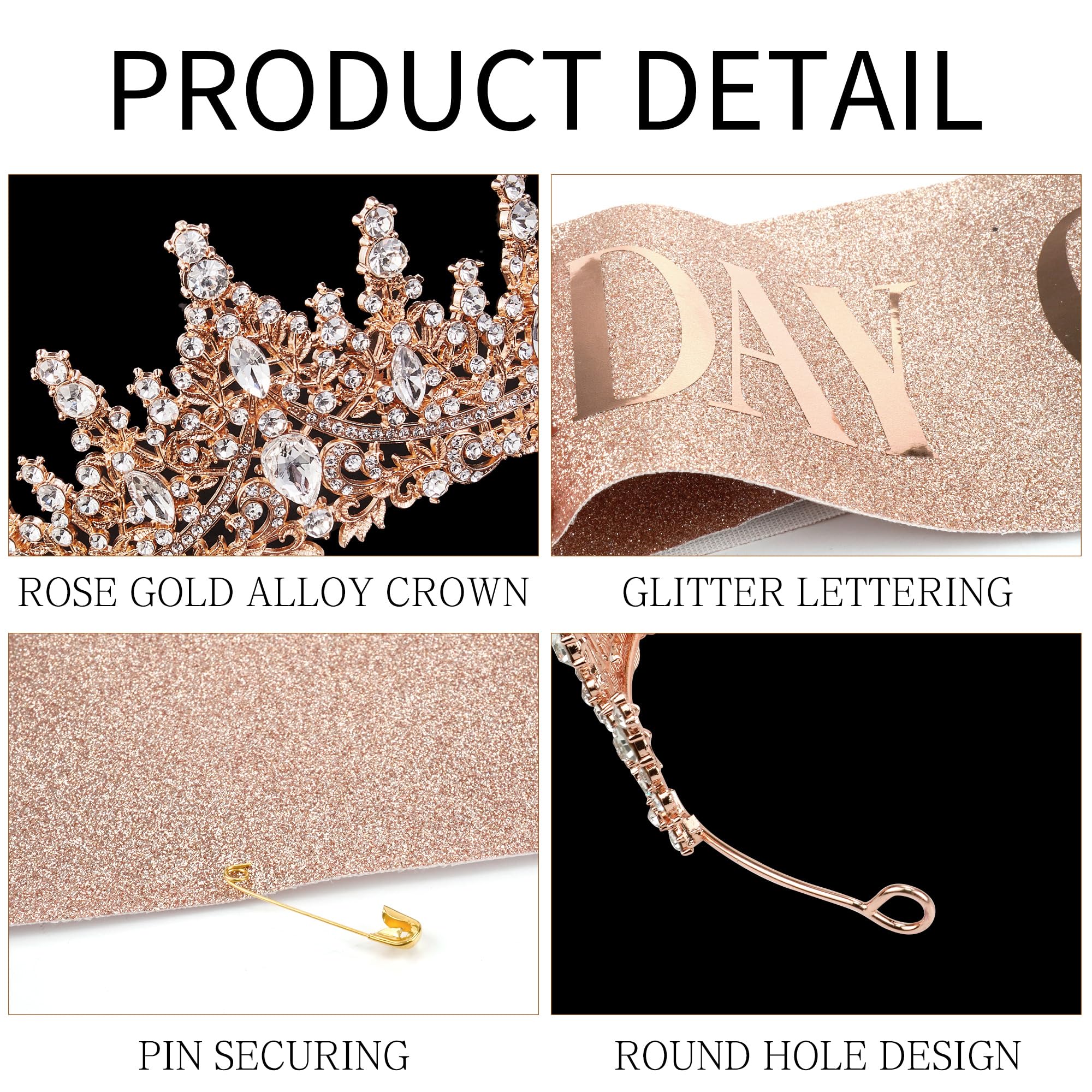 CROWN+SASH: The crown is made of carbide and high-quality rhinestones. Our sashes are made of the highest quality rose gold glitter material and hand-pressed foil. The crown looks like a diamond, is made of hard alloy, and is paired with high-quality rhinestones to sparkle and sparkle for a long time. High-quality material will not break and fade easily, comfortable and safe to wear.