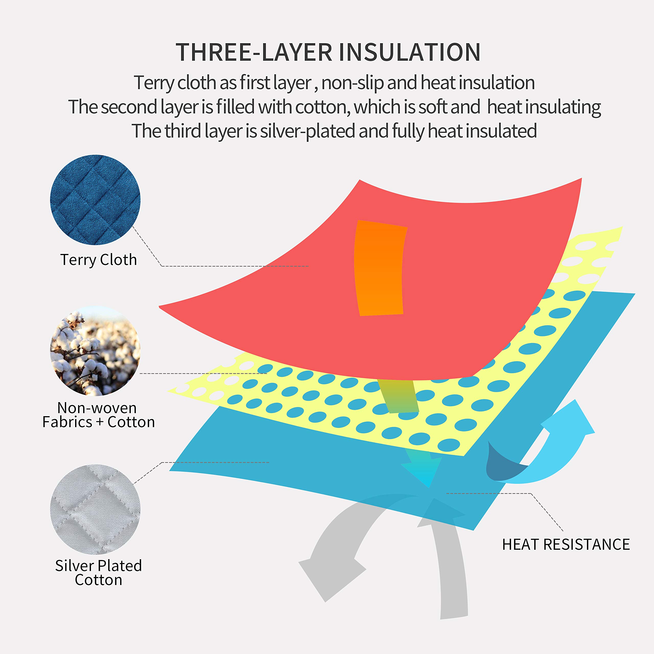 QUILTED AND PADDED - Heat resistant up to 400 degrees allowing safe removal of baking dishes and cast iron from the oven and hot pots from the stove.