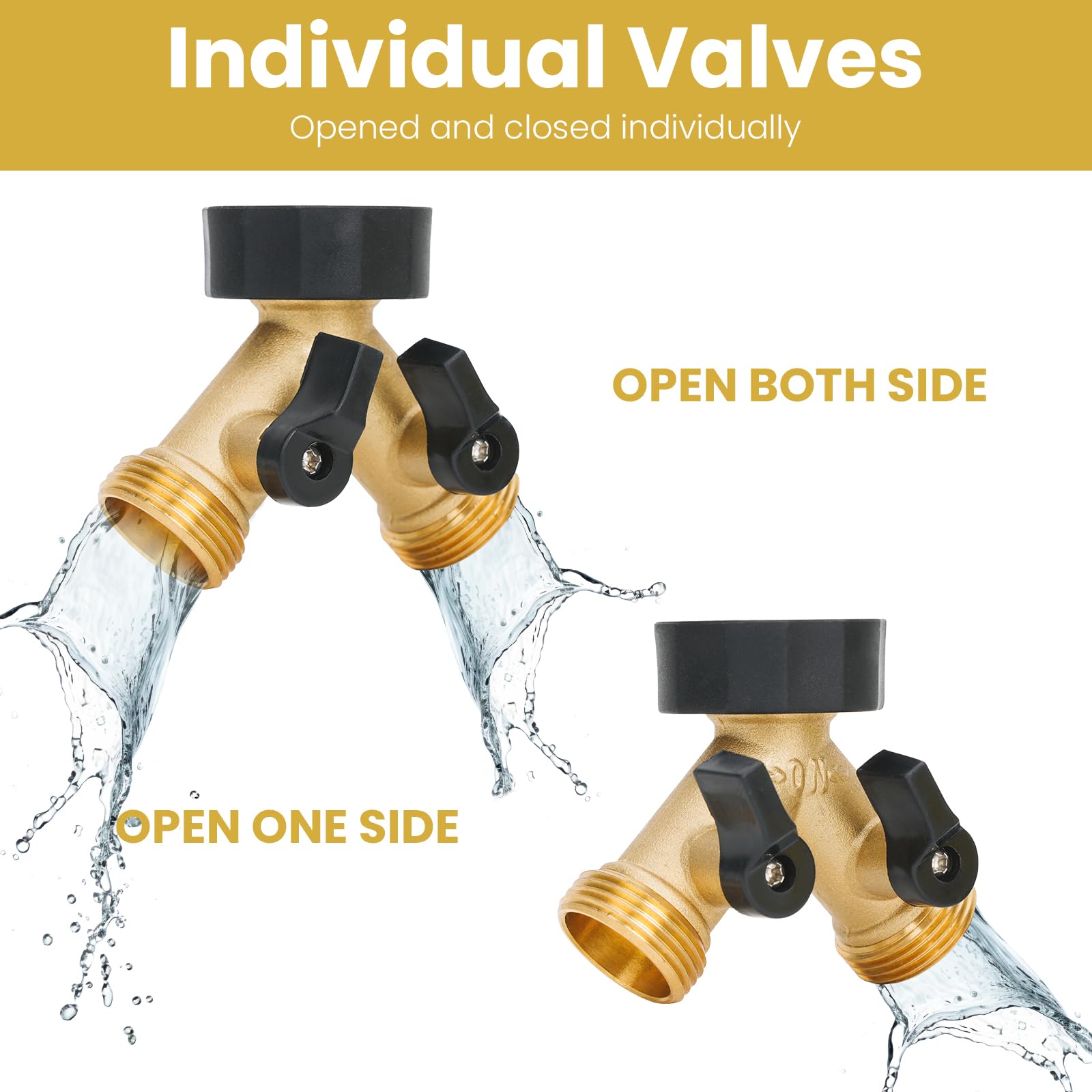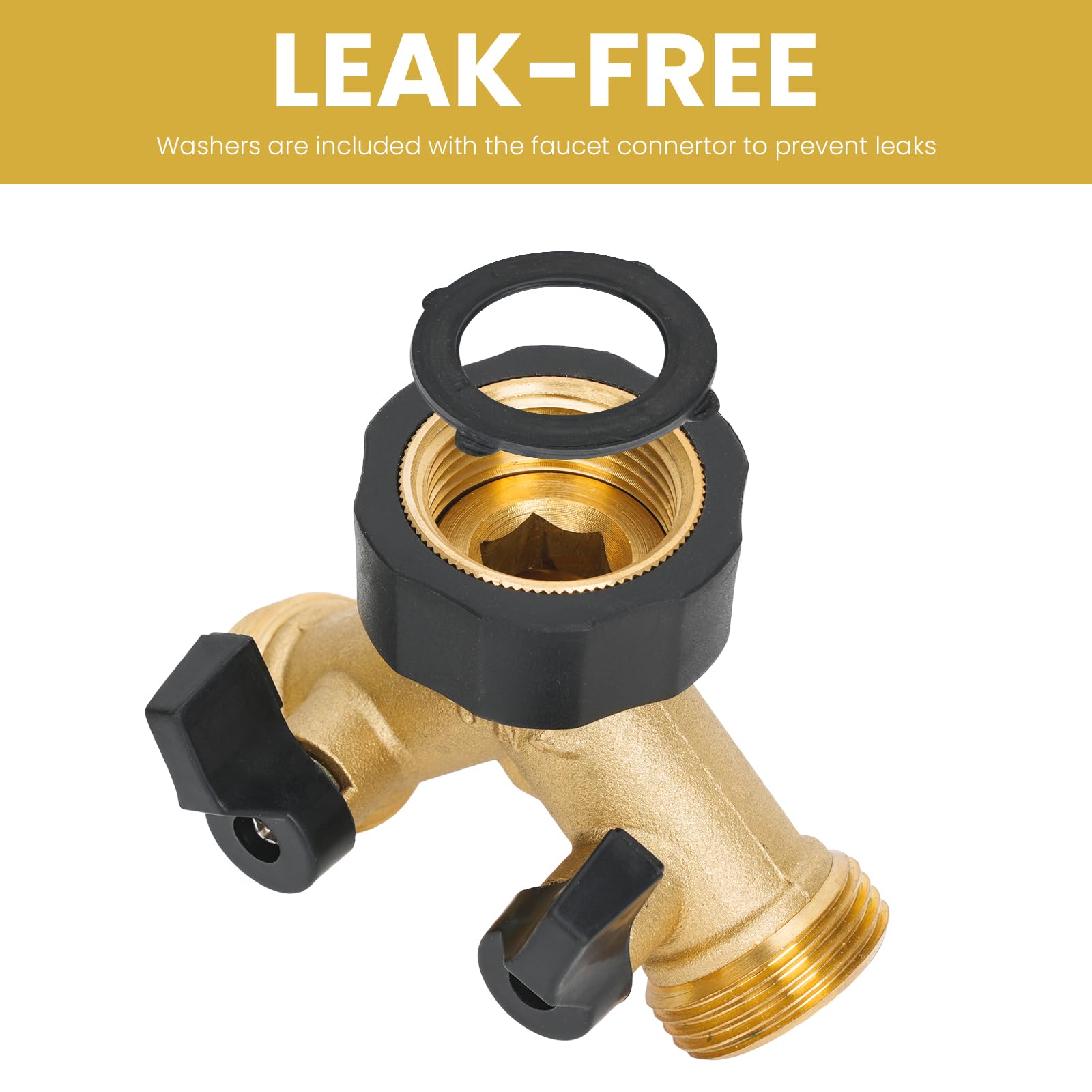 LEAK-PROOF WATER HOSE SPLITTER DESIGN:This brass water hose splitter uses rubber washers and precise threading for a leak-proof seal, making it a reliable hose splitter even under high water pressure