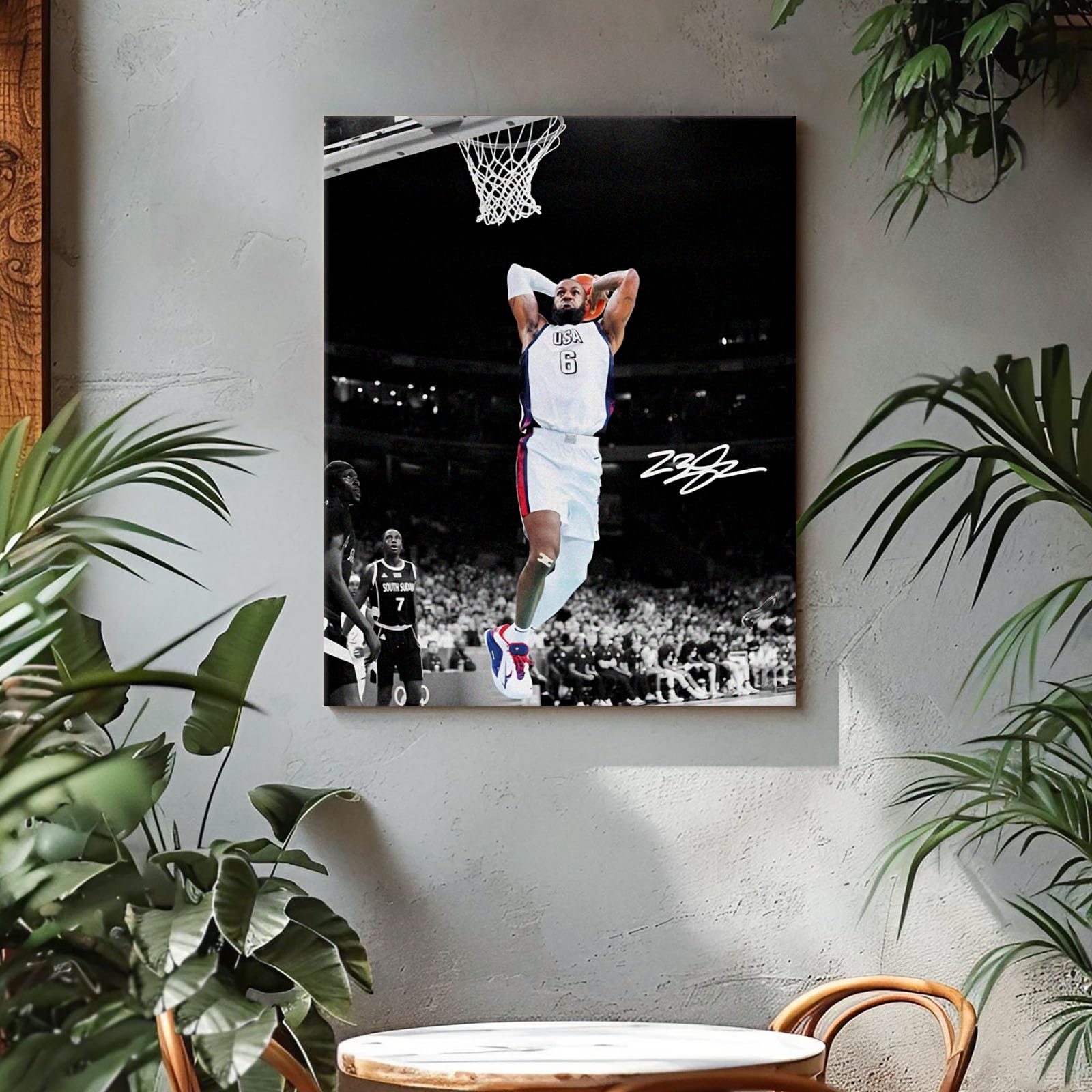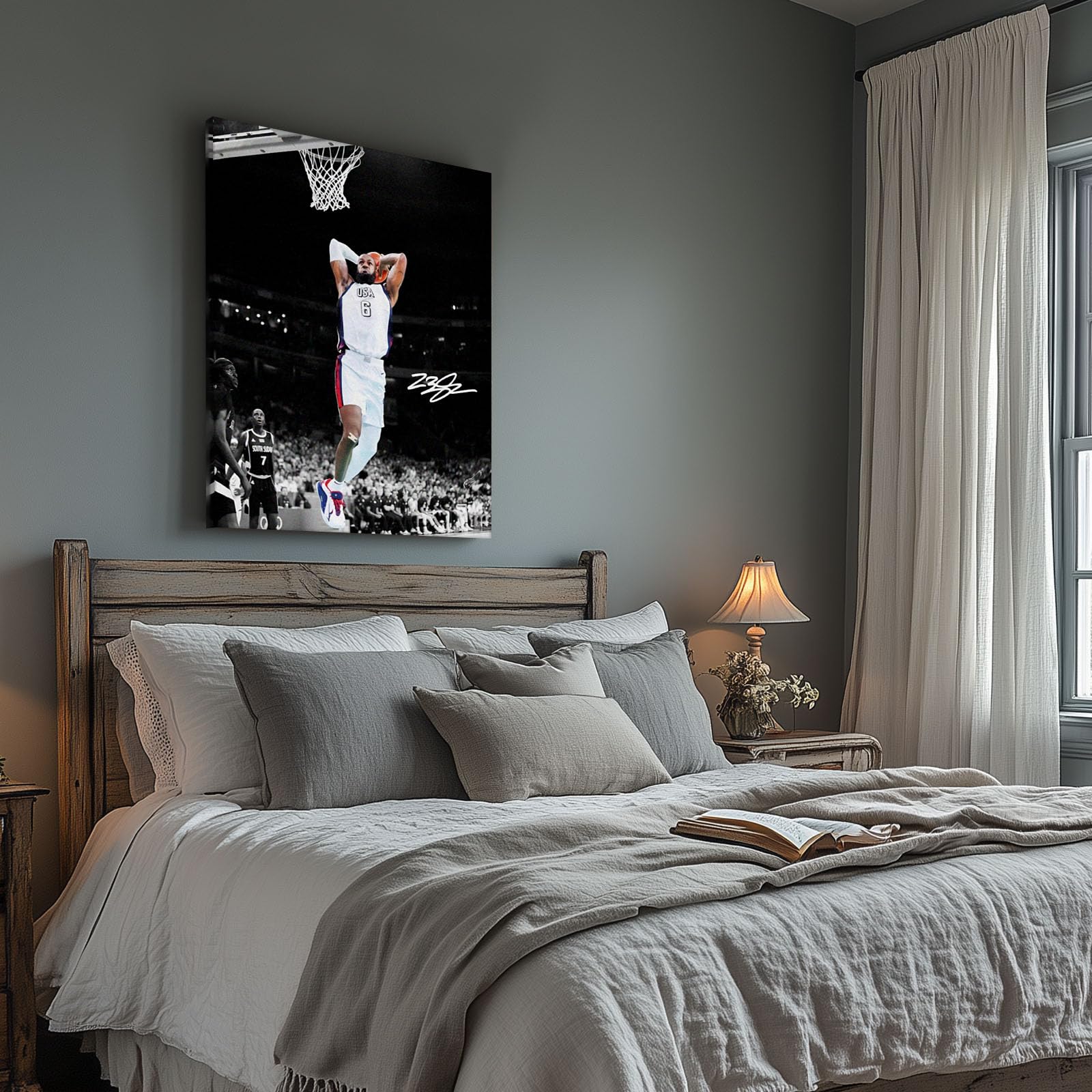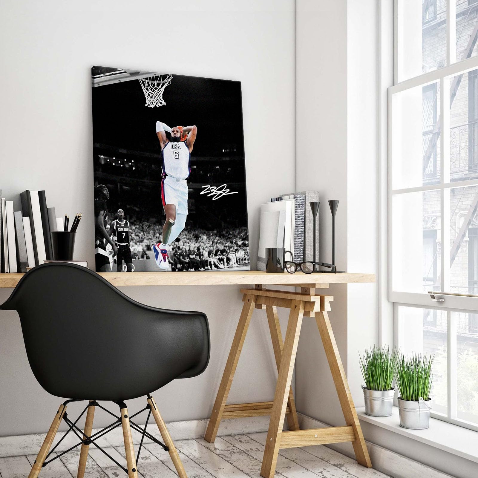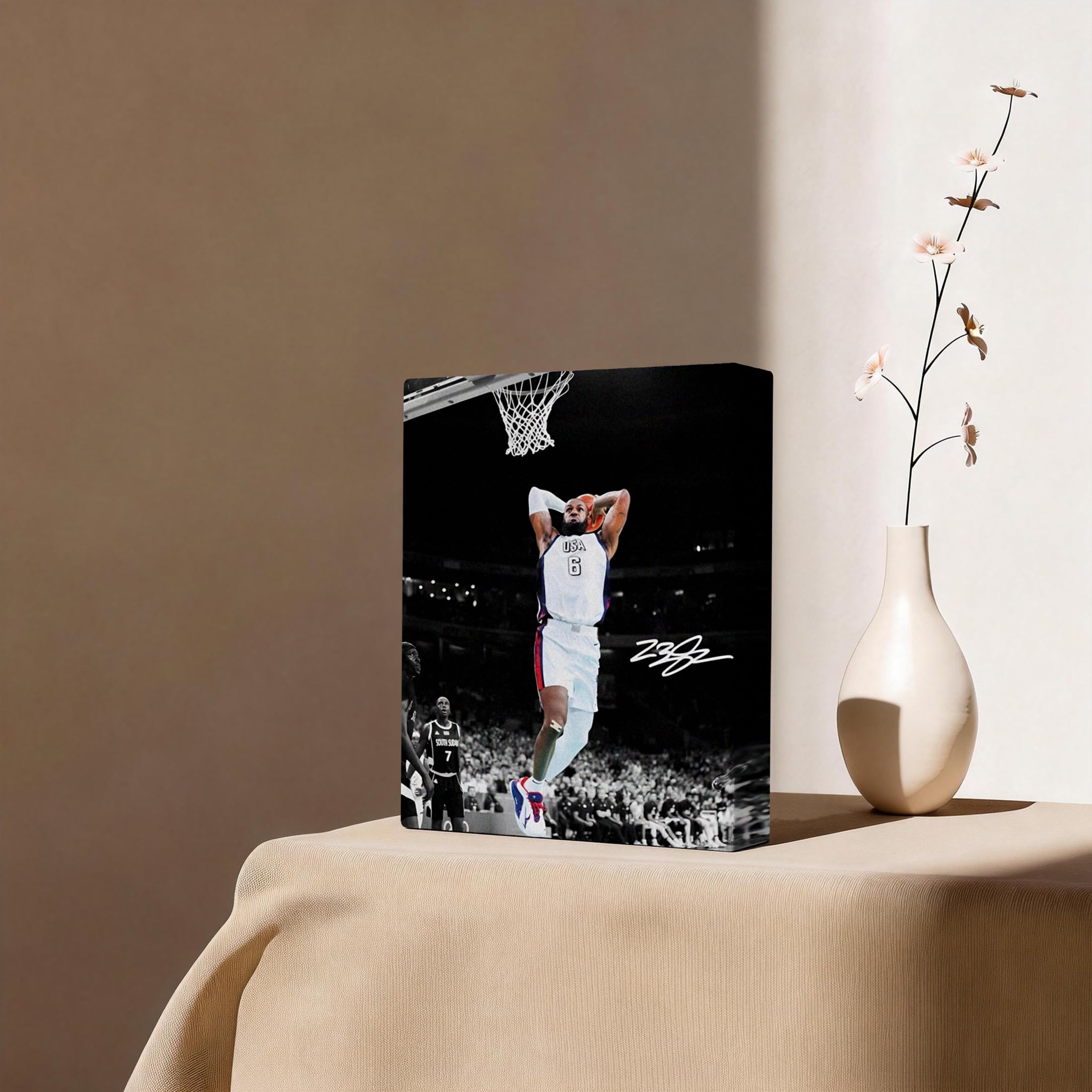 Clean Print Detail on Woven Canvas – Printed with color inks on woven canvas for crisp lines, strong contrast, and solid color areas—great for sports-themed room decor and basketball wall art displays.