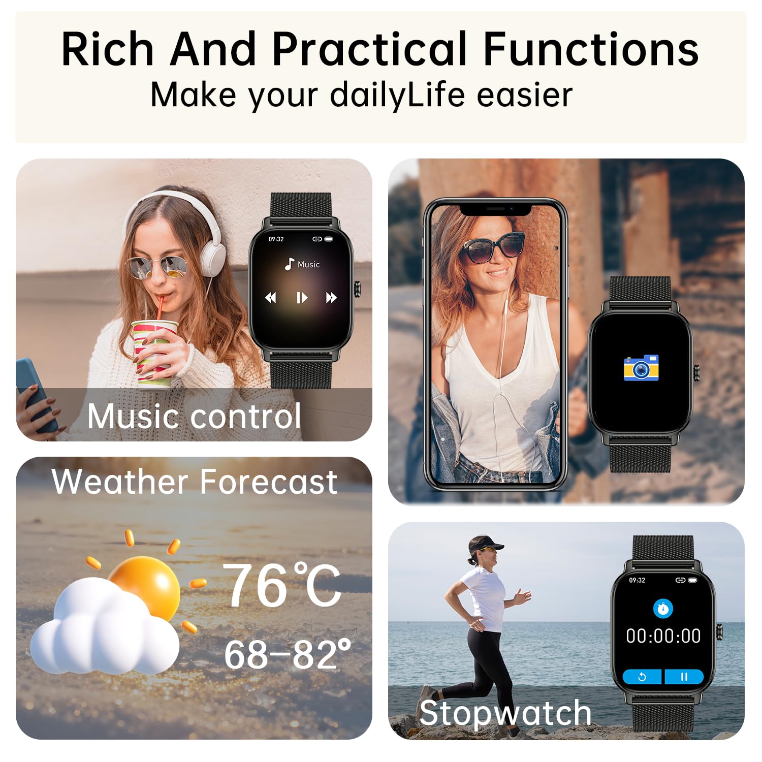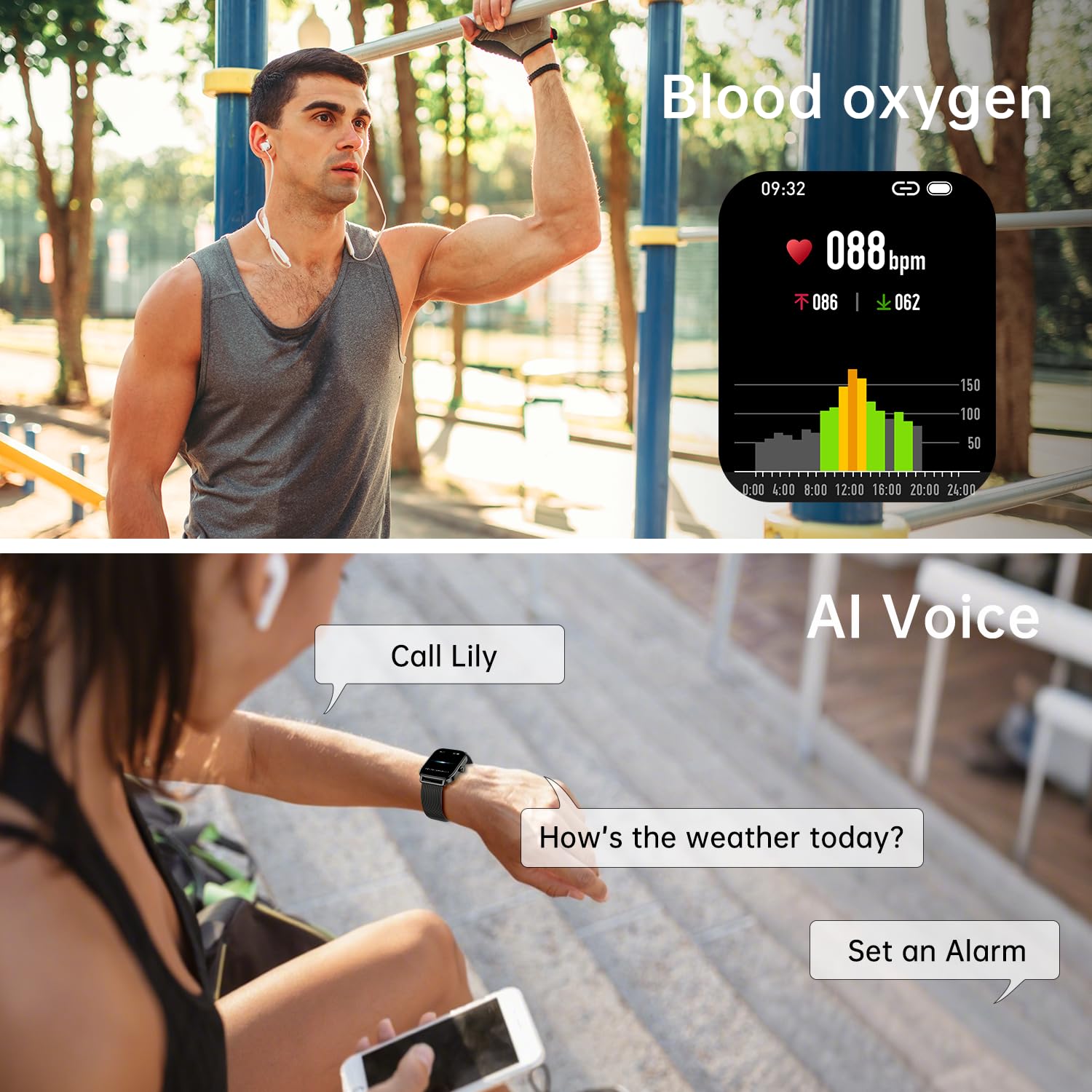 24H Health Monitoring: The health watches for men women features built-in optical sensors, mens watch continuously monitor your dynamic/static heart rate, blood oxygen (Sp02), blood pressure, and sleep quality, delivering real-time data.Heart rate monitor watch provides comprehensive analysis of your sleep patterns(light sleep,deep sleep,wakefulness). ios android smart watch help you maintain a healthy lifestyle.