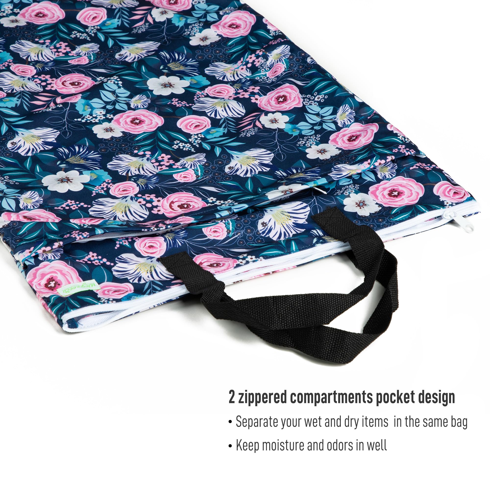 HANDLES & WET POCKET KEEPS MESSES IN - The nylon handles allows for easy hanging on a hook or doorknob on daily carry; The two zippered compartments pocket design keep moisture in well; The clean items in the front zippered pocket and the dirty or wet items in the zippered "wet" section keeping moisture in