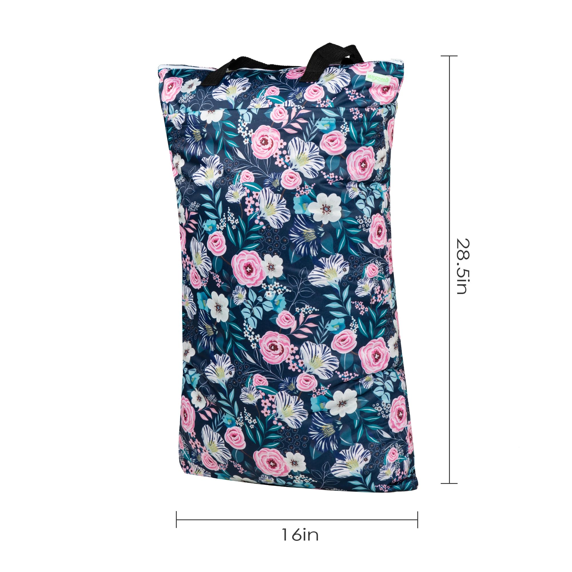 Wegreeco Hanging Wet/dry Cloth Diaper Bag is an ideal solution for one bag can carry your wet and dry items at the same time while keeping them separate. 2 Metal zippers with precise stitching and quality interior & exterior PUL fabric makes these bags and keep moisture in. Washing the bag right along with your diapers or laundry! No need to wash the diaper pail liner every time when wash the diapers inside it and leak-free surface can be easily wiped clean with a wet cloth. Wegreeco takes great attention on Quality. All of the bags are precise stitching and quality interior & exterior fabric. fCare instruction Machine wash with Hang dry or tumble dry on low. Do not use fabric softeners or other additives. Simply toss it in your washing machine when wash them, right side out. We recommend purchasing two wet bags to rotate them in the wash. Wet items must be fully wrung out before placed in the bag, excess water may cause leaks through the seams.