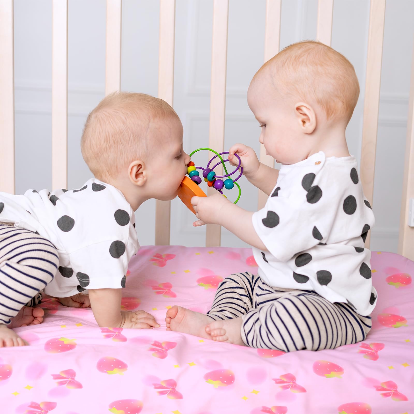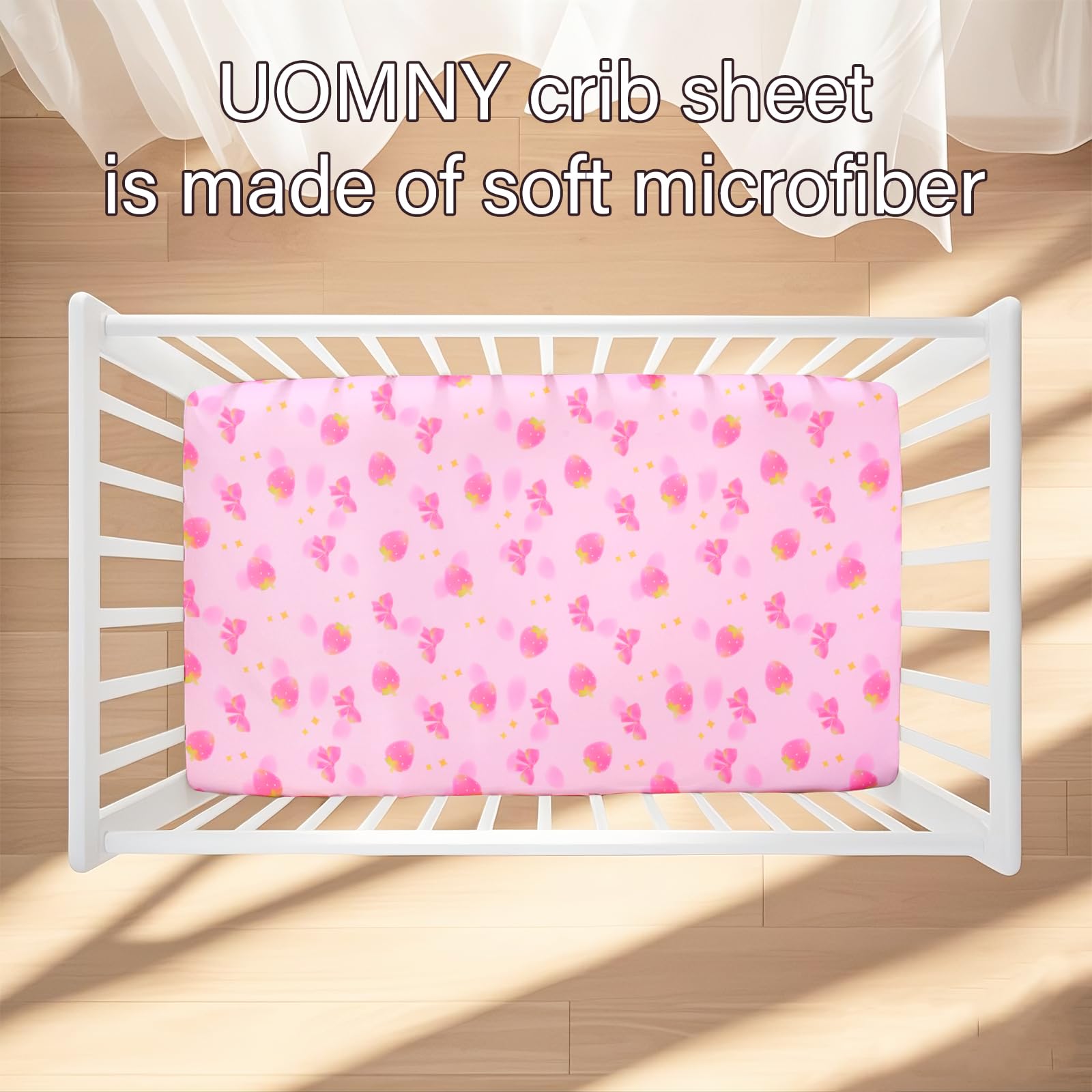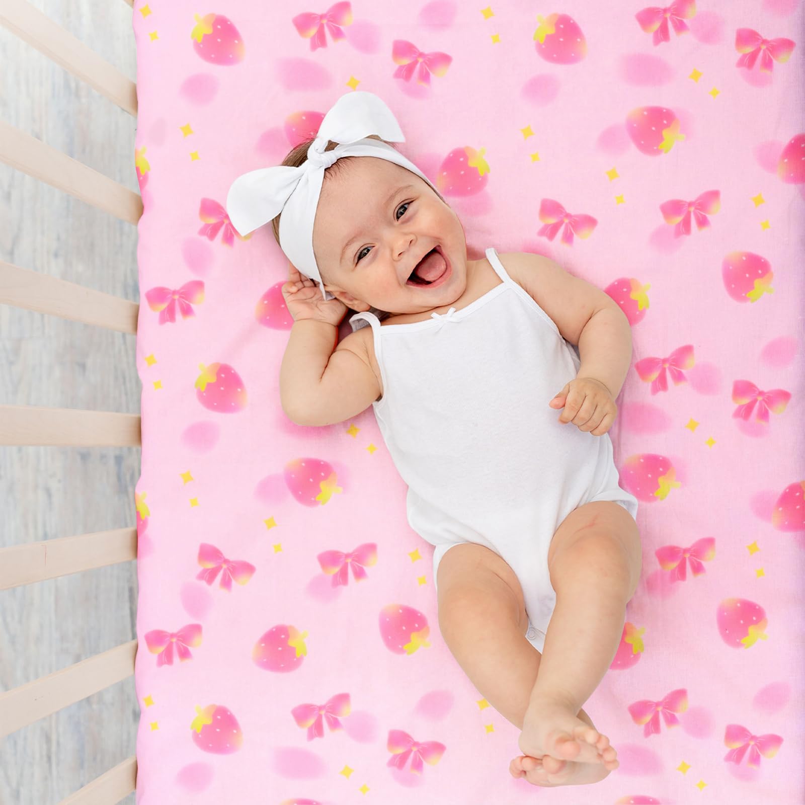 【CRIB SHEET WRAP IN 360 DEGREE】:Dimension 28" x 52" for standard crib and toddler mattresses.The Strawberry bow sheet will wrap your baby mattress in 360 degree,which can make it solid non-slip more break and be suitable for all kinds of baby sleeping positions Fits all standard Crib Mattresses and Toddler Bed Mattresses.