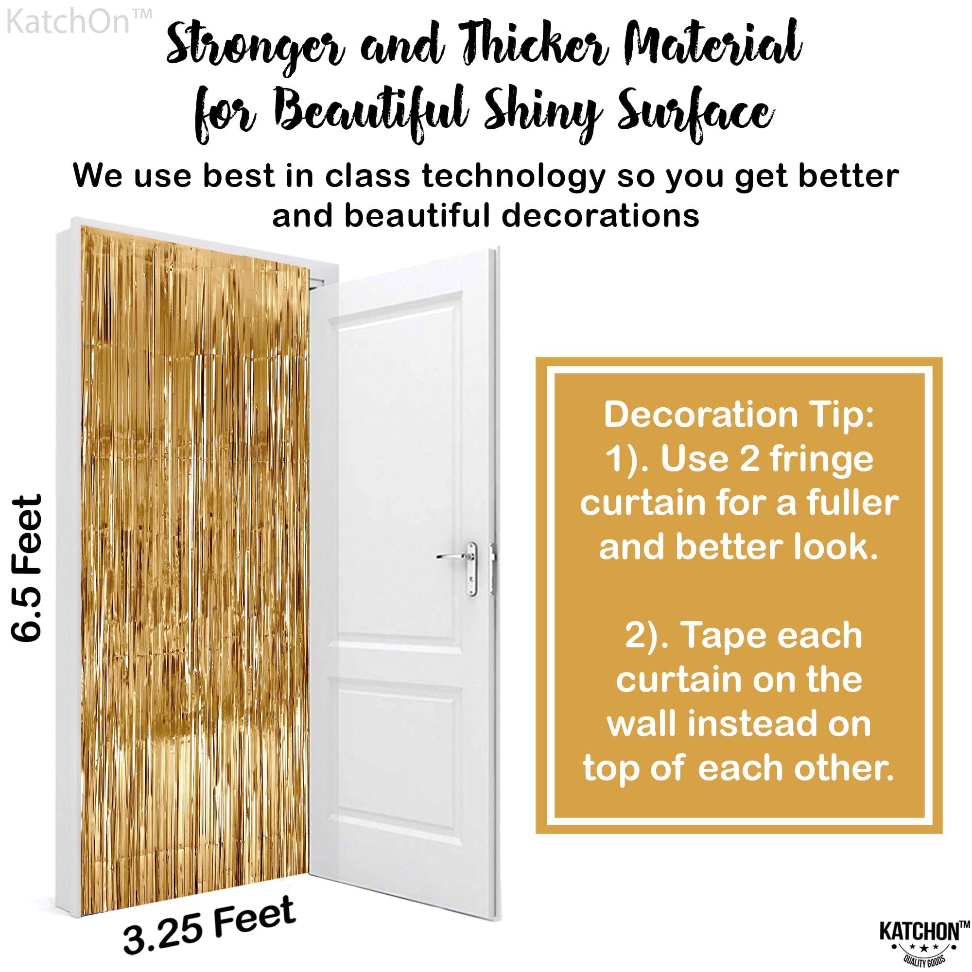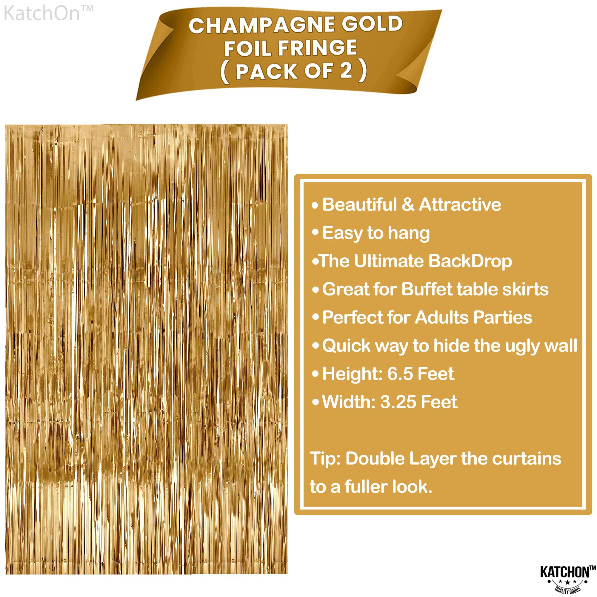 IDEAL SIZE: 3.2x6.5 FEET | PACK OF 2 | CHAMPAGNE GOLD FRINGE BACKFROP: Create a stunning gold backdrop instantly with the champagne gold fringe that shines like gold curtains. Sparkle up your event with shimmering gold streamers and pair it with champaign gold photo backdrop for champagne party decorations. The metallic shine transforms any flat surface into a luxe focal point in golden birthday party decorations offering a rich backdrop for selfies or product shots, gold metallic curtains for parties. Also fit seamlessly into ramadan decorations, ramadan decorations for home.