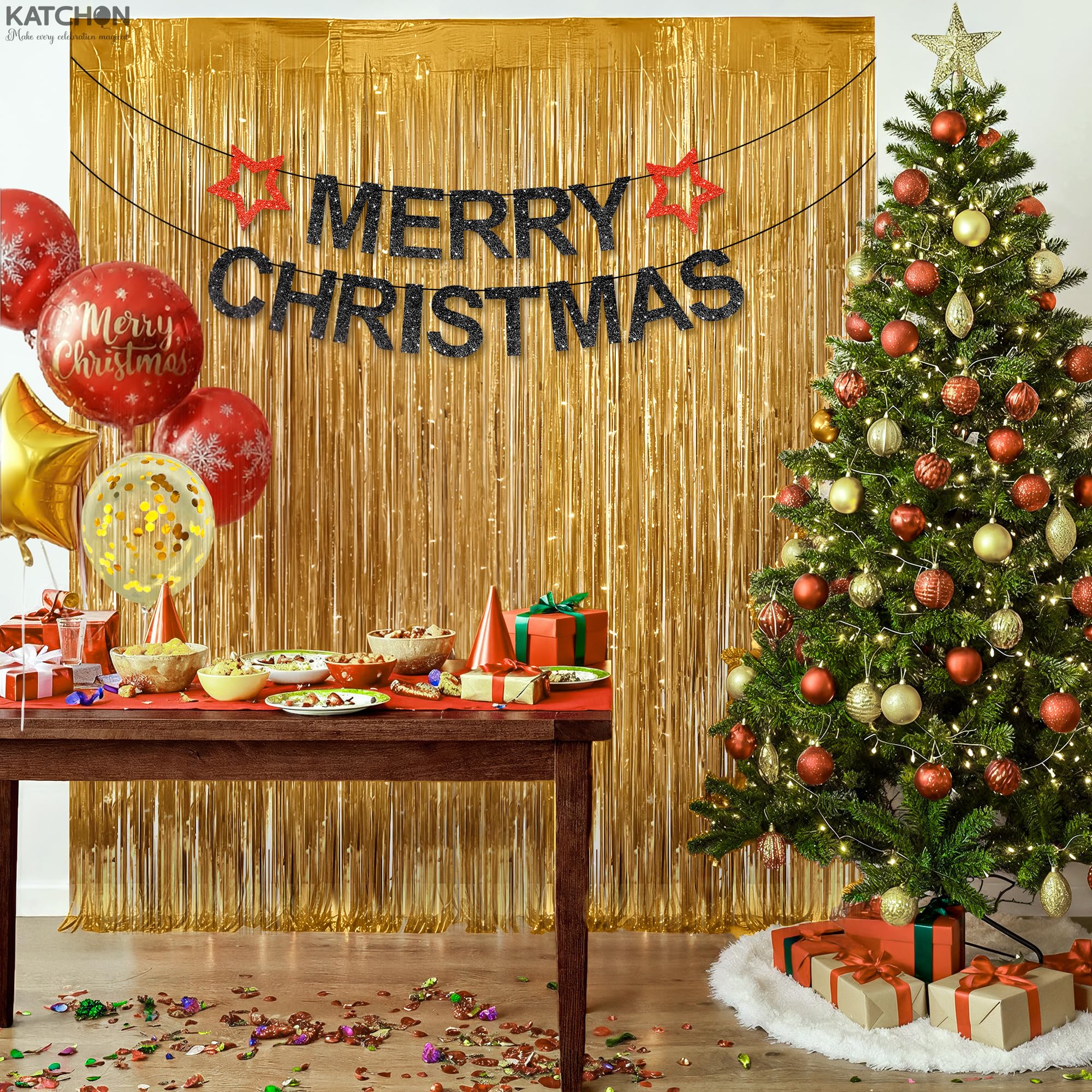 WIDE APPLICATIONS | STYLISH TRENDY BACKDROP: Show off bold color combinations by pairing this glimmering foil fringe with hollywood theme party decorations or tropical blooms. It’s an instant upgrade for green and gold birthday decor visions and blends effortlessly with pink and gold streamers, champagne foil fringe curtain. Use as a standalone gold shimmer curtain or layer under complementary drapes for a lush vibe. The reusable strands also transform into gold shimmer curtains for dynamic accent walls at chrustmas party decor, . Powered by Brnd.Me