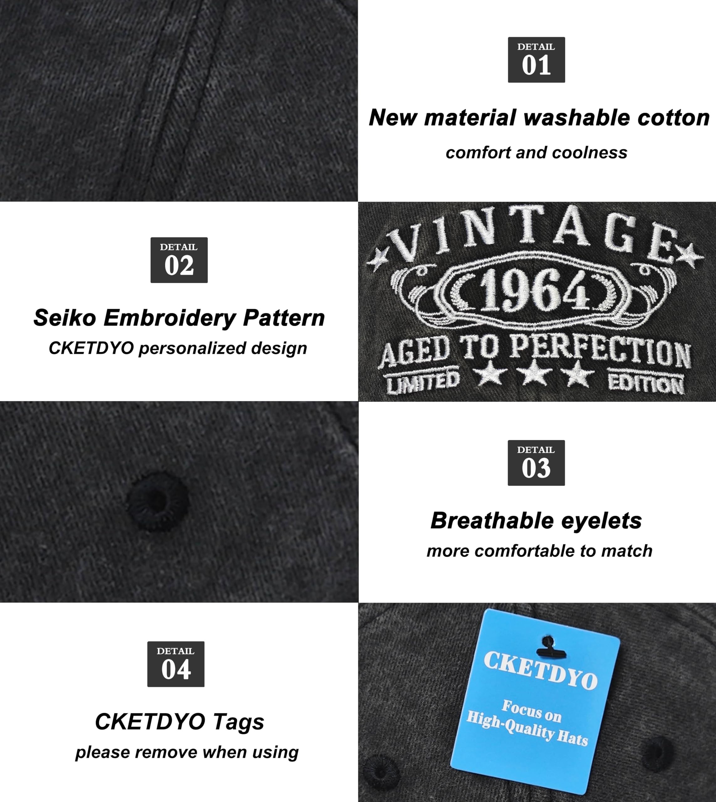 Ideal Gift for 61th Anniversary: The "VINTAGE 1964" baseball cap is a great way to show your loved ones that you care and miss them on their 61th birthday, especially your husband or wife. It's also the happy way for you to commemorate this milestone.