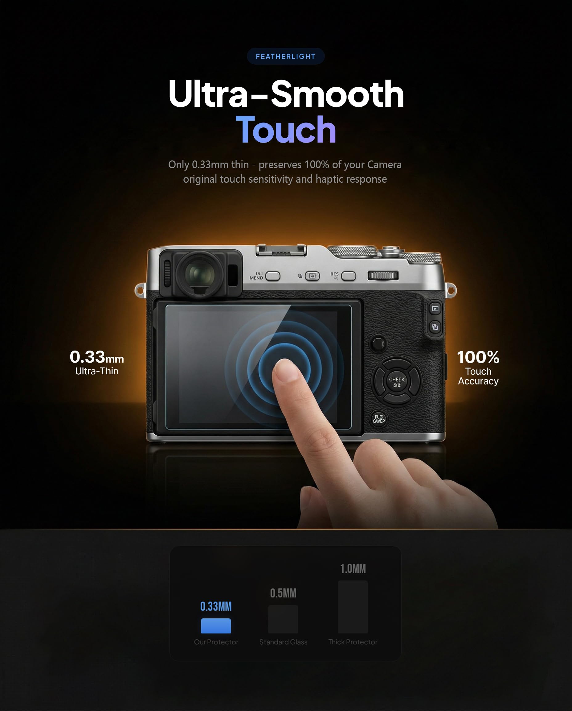 ✅ ULTRA THIN-0.3mm thickness is reliable and resilient, and promises full compatibility with touchscreen sensitivity