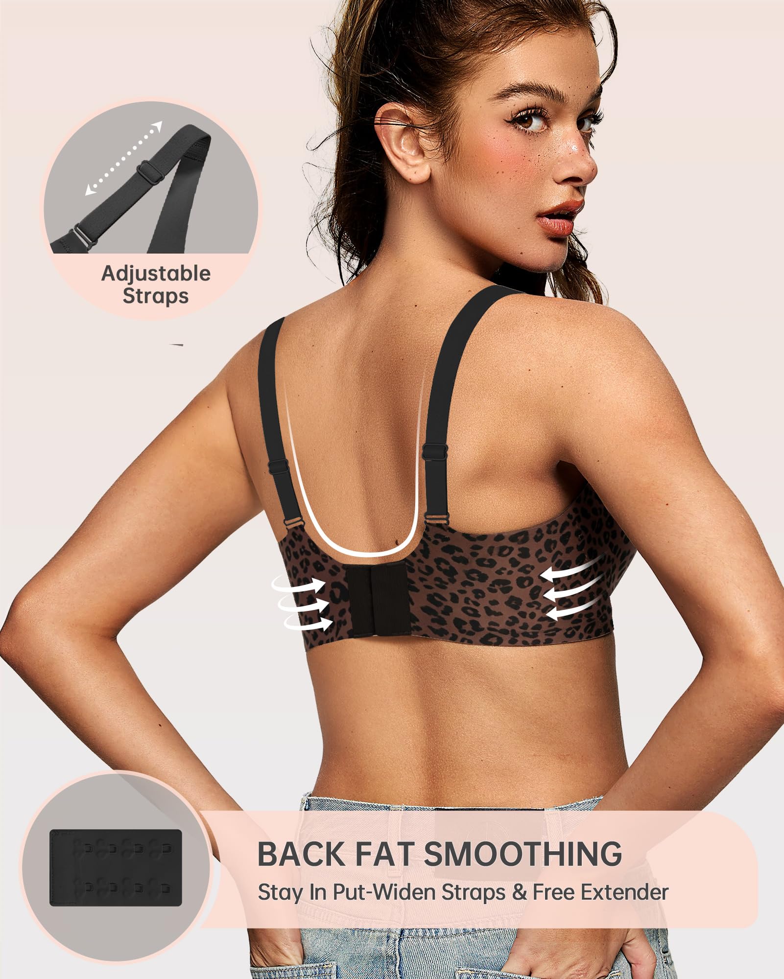 Seamless Bras with Sexy U-Shaped Back - These invisible bras with adjustable, non-slip straps provide better support and reduce pressure on the shoulders and neck. The seamless U-shaped back design stays hidden under any outfit, including backless tops. The integrated back hooks and widened sides make the bras supportive and ensure back fat smoothing.
