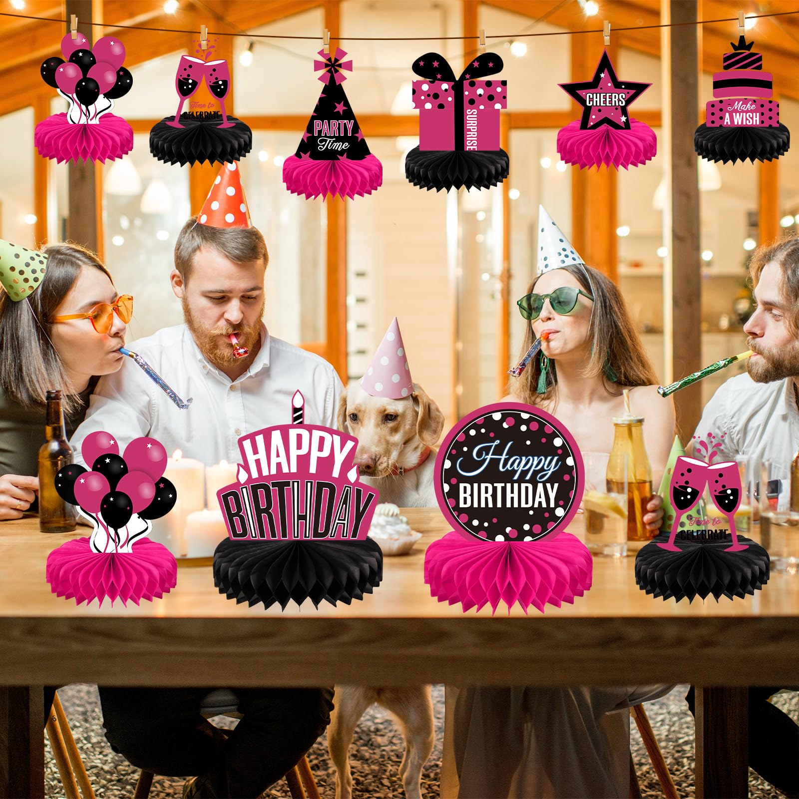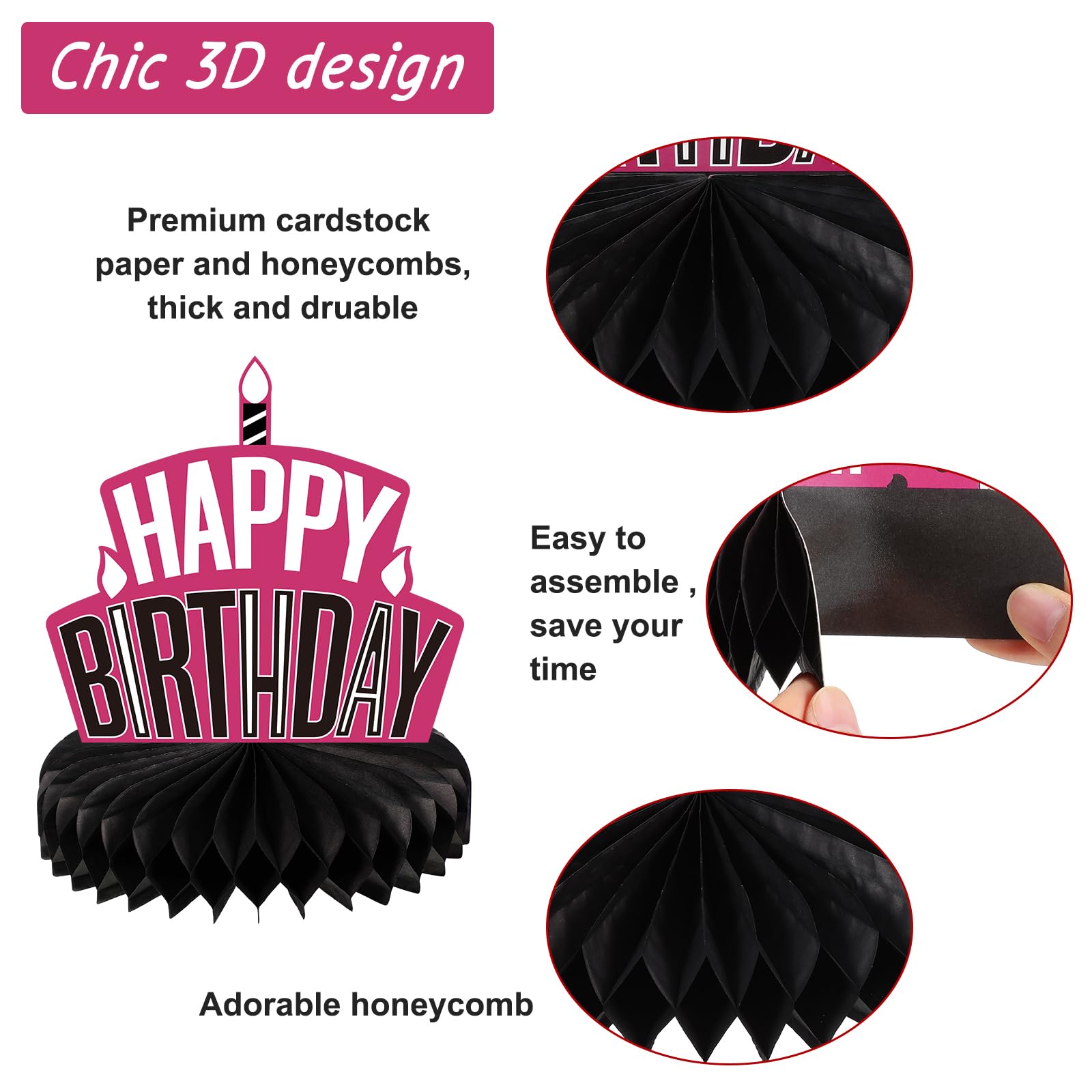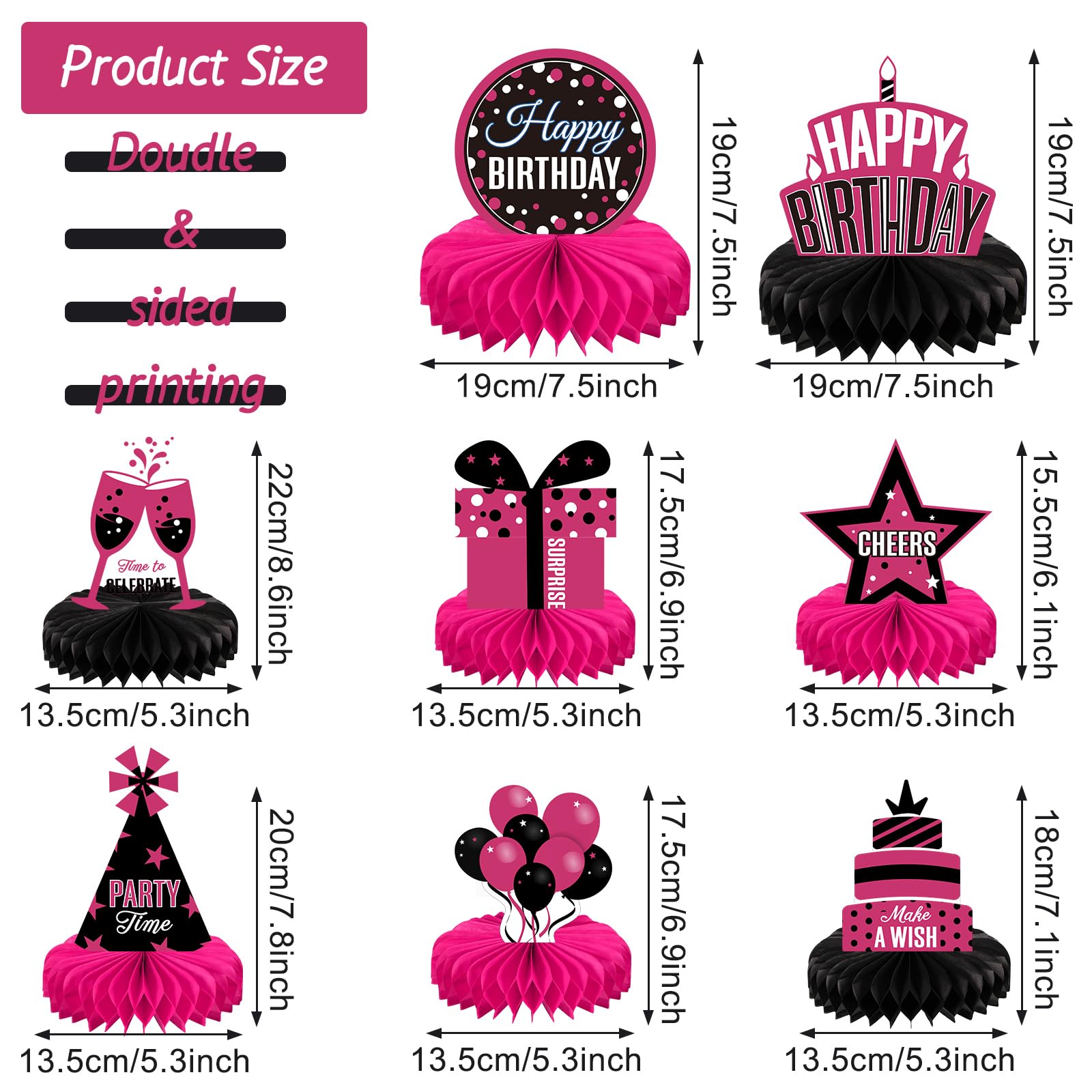 Package Includes: you will receive 8 pink and black birthday party honeycomb centerpieces in 8 different designs, sufficient quantity and various styles to meet your birthday party decoration needs and make your birthday themed party a hit