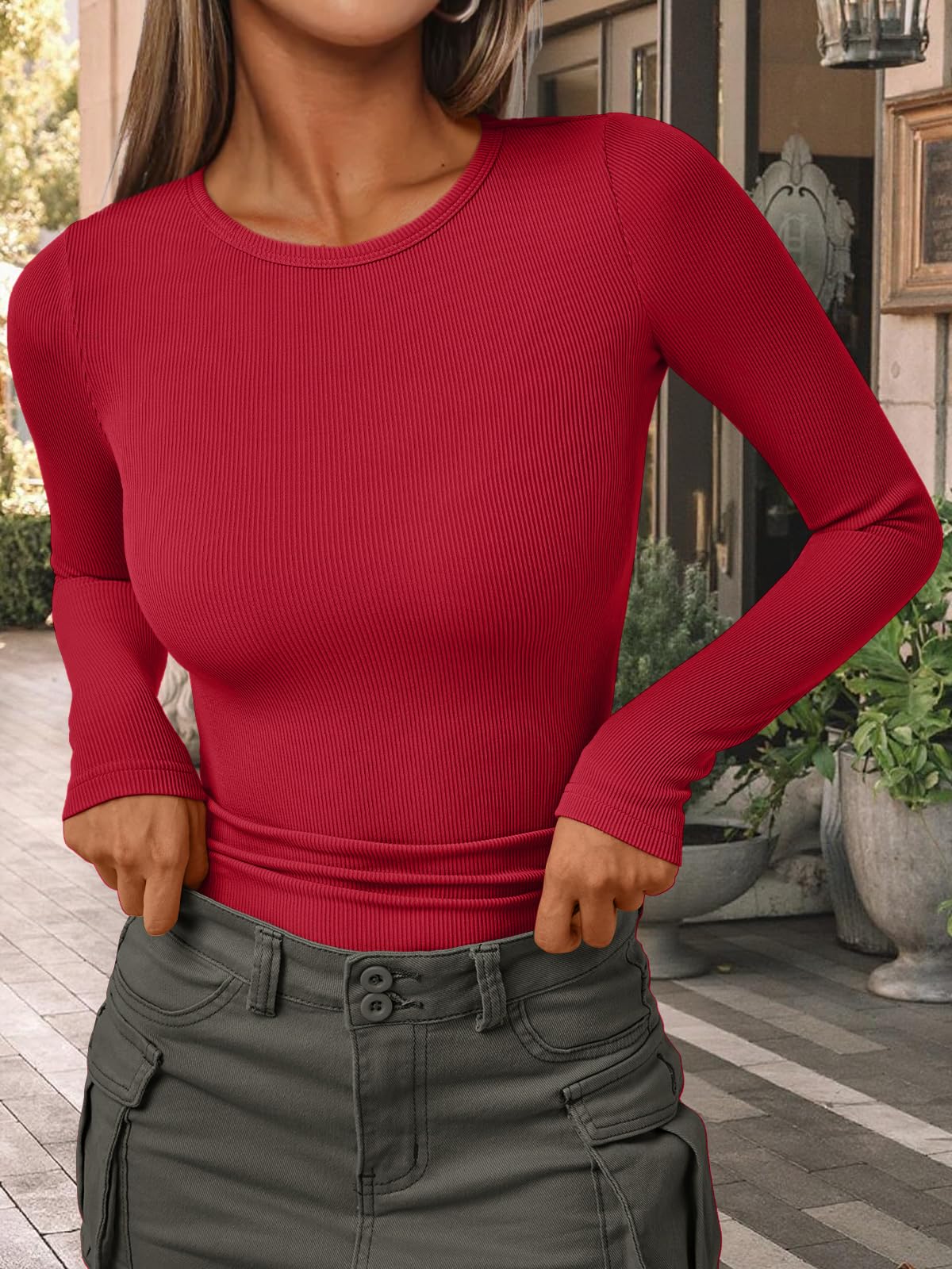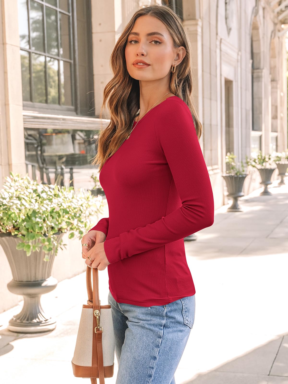 CHIC DESIGN: Basic tops for woman designed with long sleeves, fleece lined, solid color, crewneck, ribbed knit, cozy, stretch fitted, our casual tees will be your faves season after season