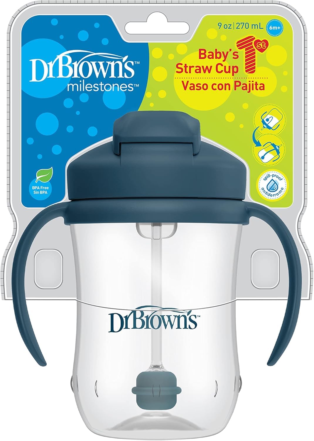 BABY’S FIRST STRAW CUP. Dr. Brown’s Baby’s First Straw Cup simplifies the bottle-to-cup transition for you and baby, helping them learn new drinking skills