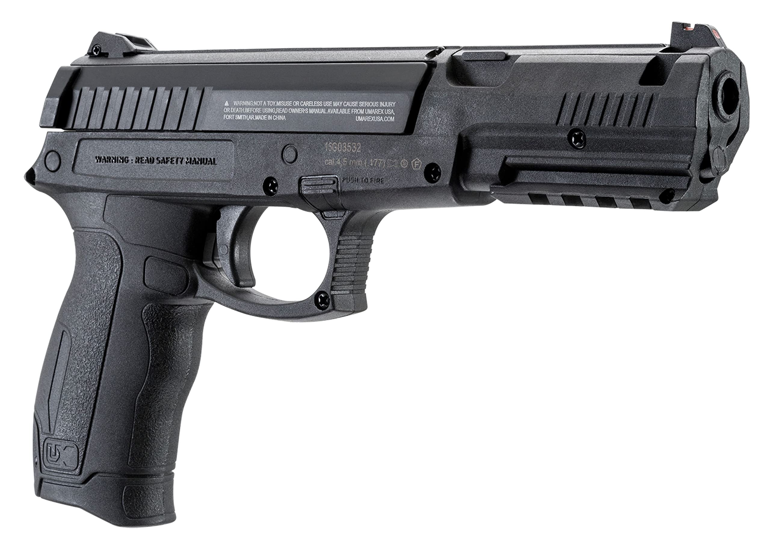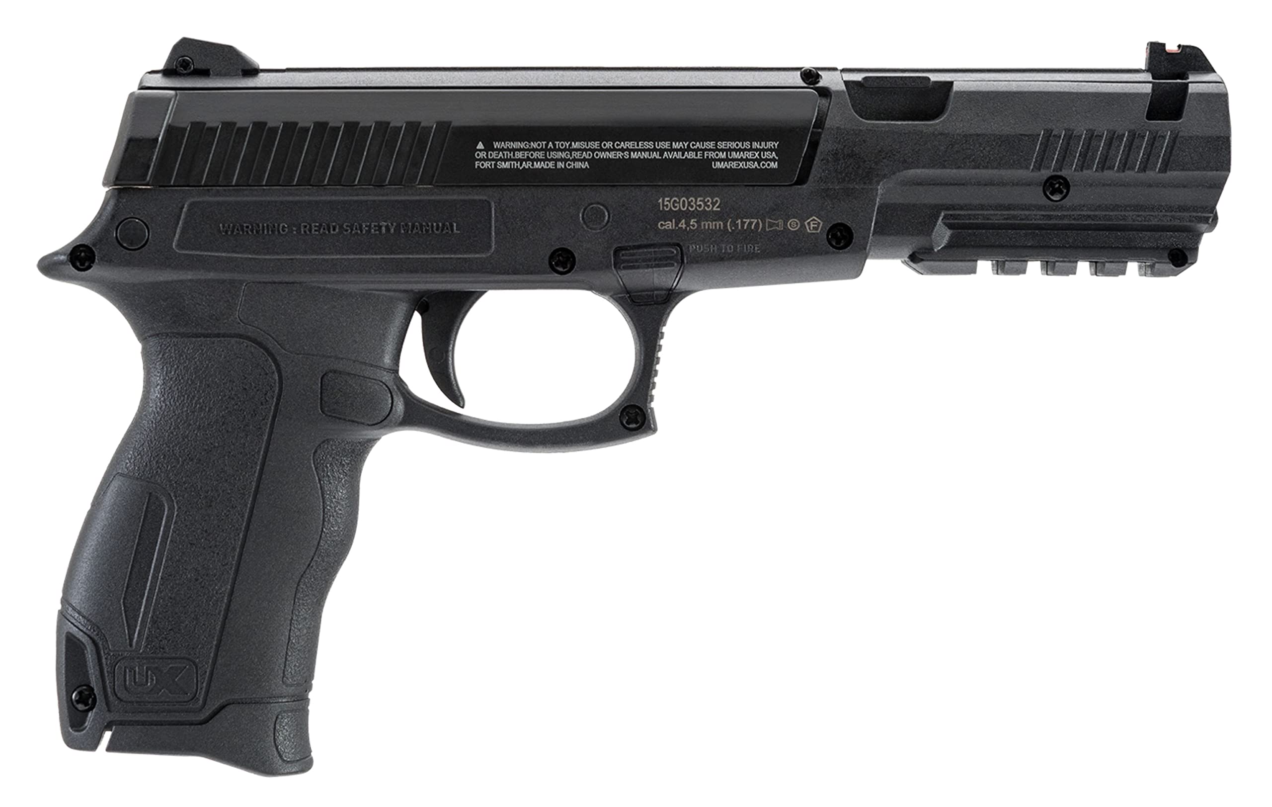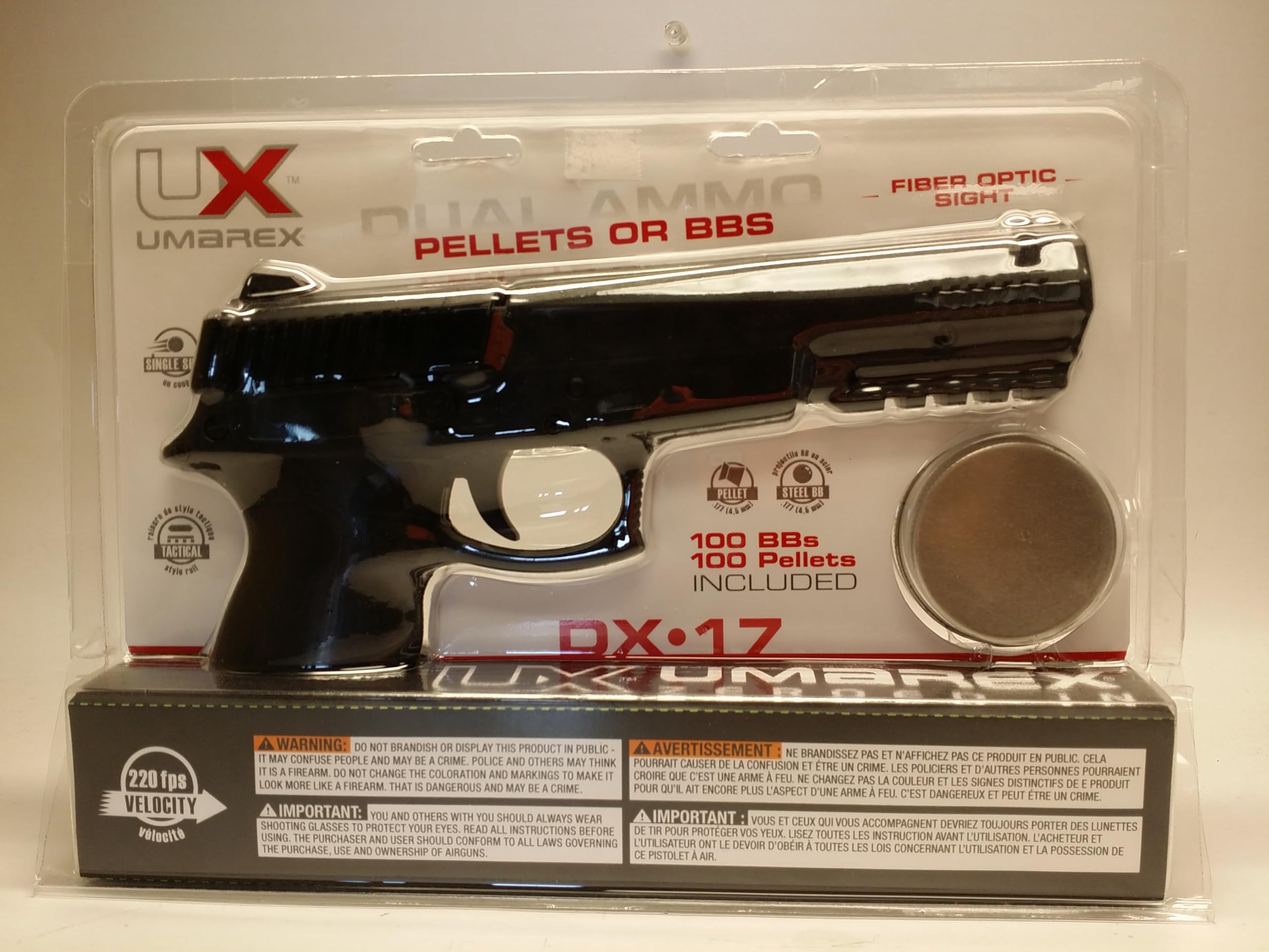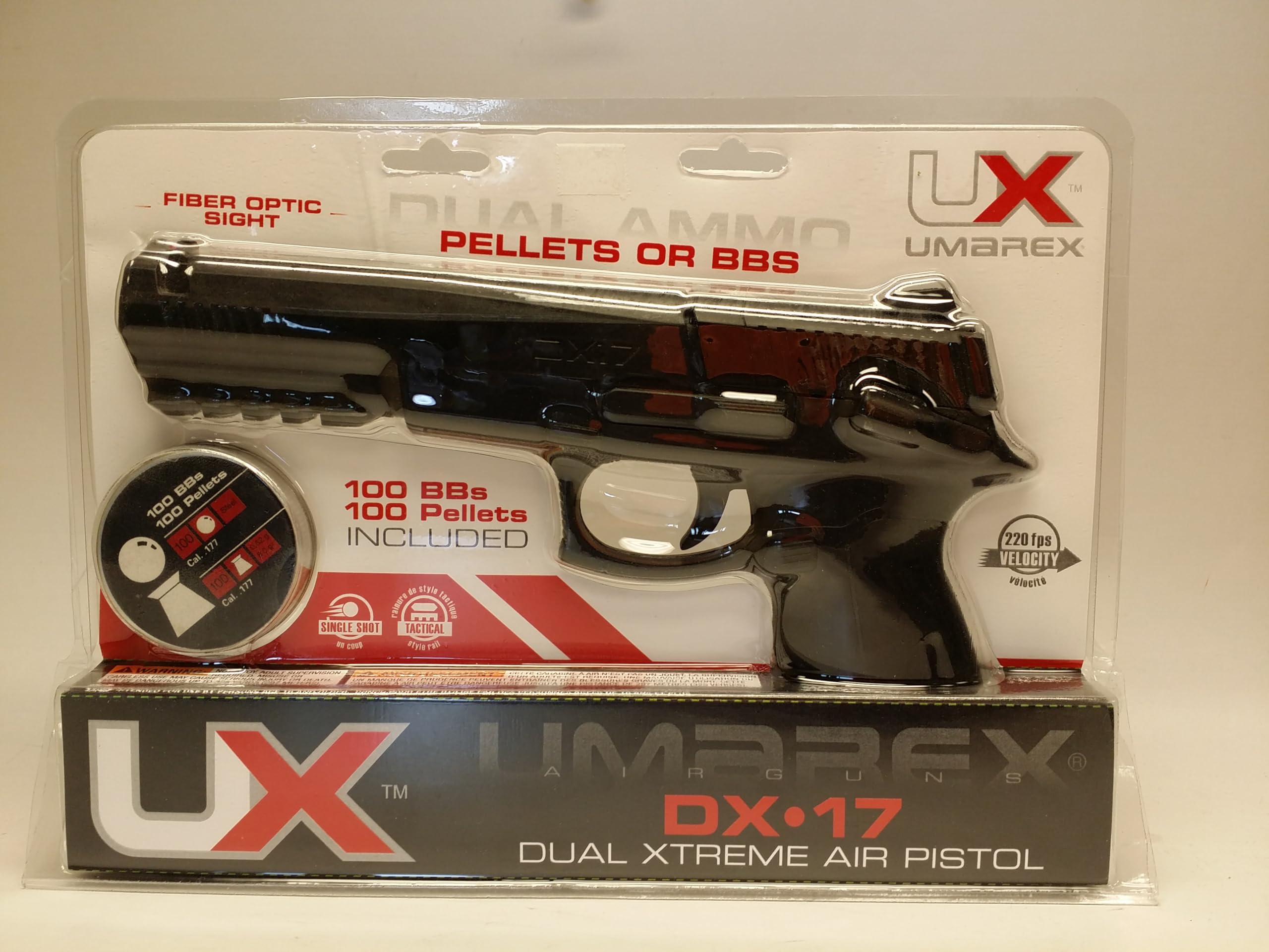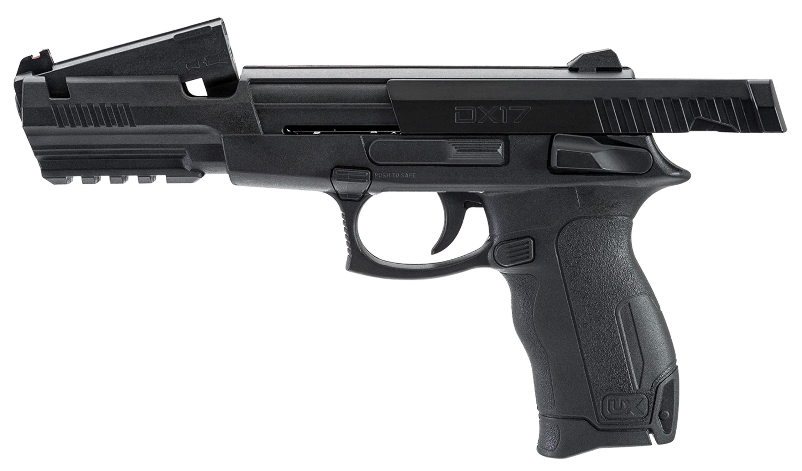 The Umarex DX17 single stroke air pistol is the perfect air gun for recreational plinking. This spring-powered air-gun fires .177 BBs and has a convenient built-in ammo reservoir that holds 15 BBs. The DX17 has an integrated accessory rail, a fiber-optic front sight, and an ergonomically comfortable grip. The serrated slide makes it easy to grasp and the flip-up loading hatch makes it simple to load with BBs. This Umarex BB Gun includes 200 steel BBs in the kit. It’s an incredible value that allows you to experience the fun and action of shooting just about anywhere there's a safe backstop. Airguns like the DX17 are great for building shooting proficiency.