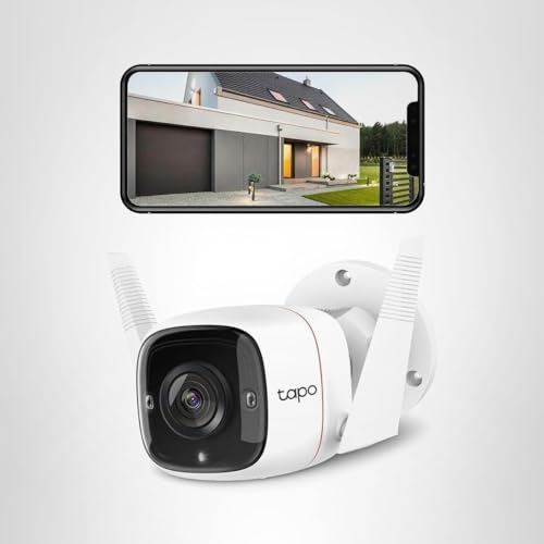Designed and built for your family's safety and your convenience, the Tapo Smart Outdoor Security Wi-Fi Camera with 24/7 Recording C310 will keep AI-enhanced watch over your outdoors. Featuring pristine 2K HD resolution video rest assured that no details of faces or objects will be missed. Even at night, see with clear night vision up to 98 feet away. Crisp 2-way talk quality is accessible anytime at the push of a button, and you can also trigger the built-in speaker to play a siren to ward off intruders. Using advanced AI algorithms, get notifications that matter with person detection, or create custom activity zones near vulnerable areas like windows to get immediately notified someone is there. Deploy the outdoor security with peace of mind because camera is truly weatherproof with its IP66 rating, protected from harsh rains and particles. Compatible with Amazon Alexa and Google Assistant, you can stream using Echo Show or Google Chromecast. (2 year warranty).