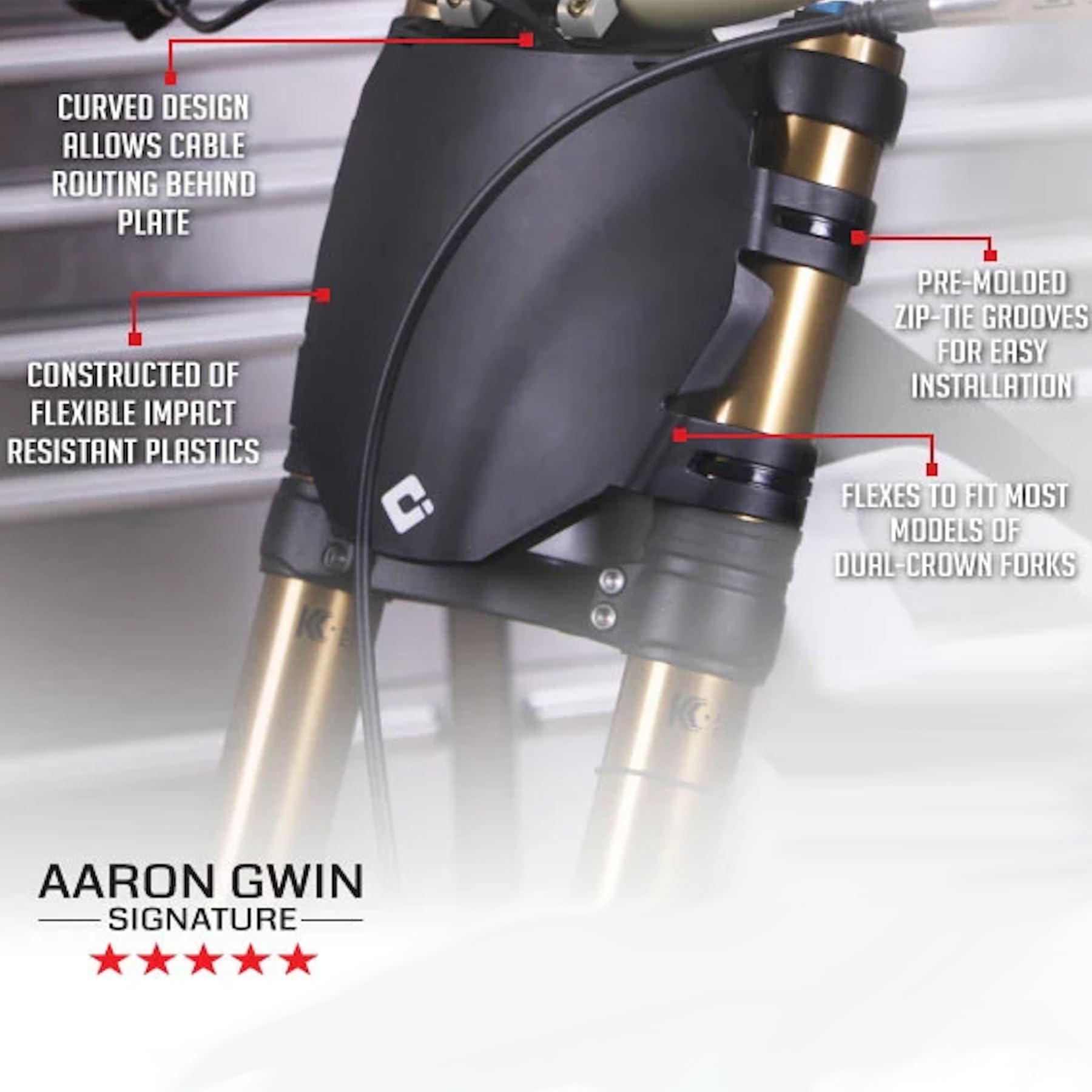 Designed and tested by multiple time world cup DH Champion Aaron Gwin to meet the rigorous demands of world class downhill racing while also improving aero performance and the overall appearance of the bike