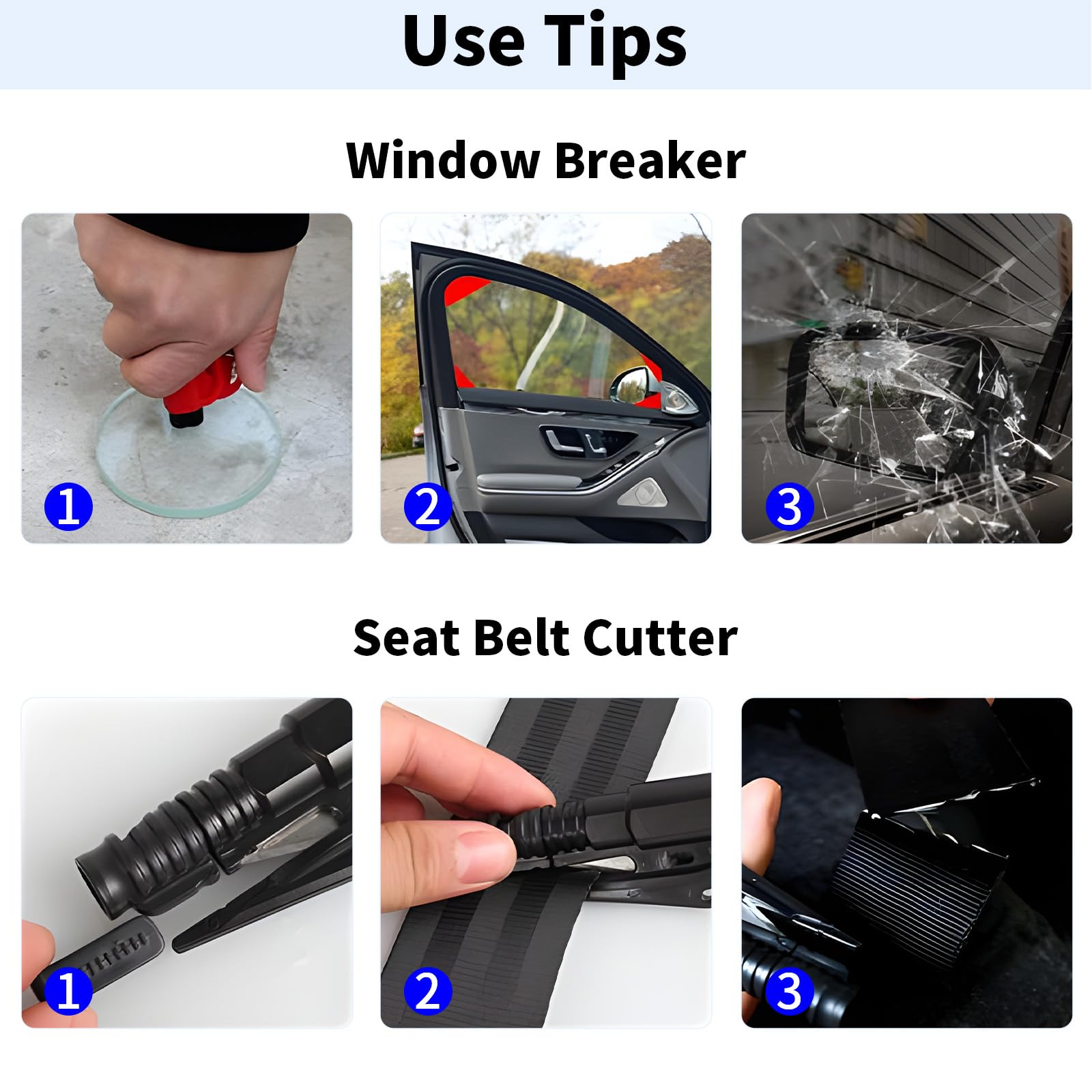 3 in 1 Design Safety Tool: This safety tool has 3 functions. This 16 pcs of car escape tool with seatbelt cutter is a must-have for every car