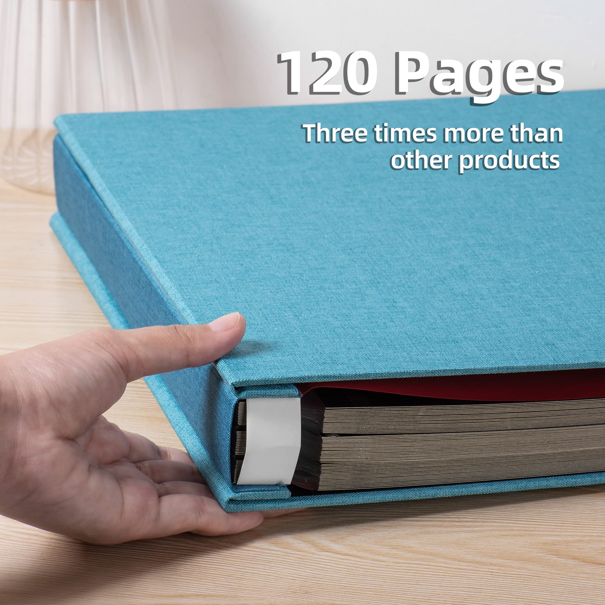 Album Size: The external size is length 13 x width 12.8(inches), internal self-adhesive page length 12.6x width 11(inches), 60 sheets/120 pages, Can hold 600 4x6, 120 8x10 photos