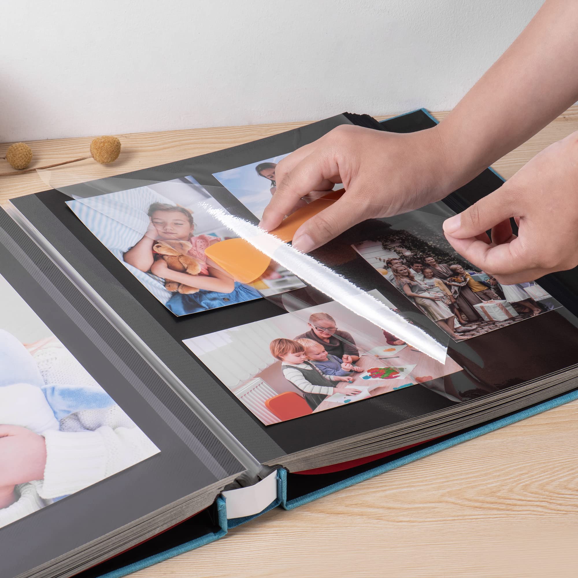 Self-adhesive design: suitable for any size photo, the page can be used repeatedly, free access to your precious photos. The included small scraper makes the protective film on the page more flat.