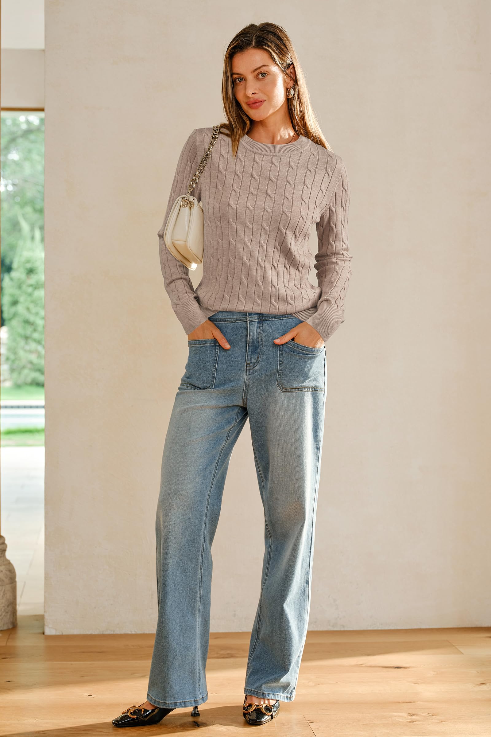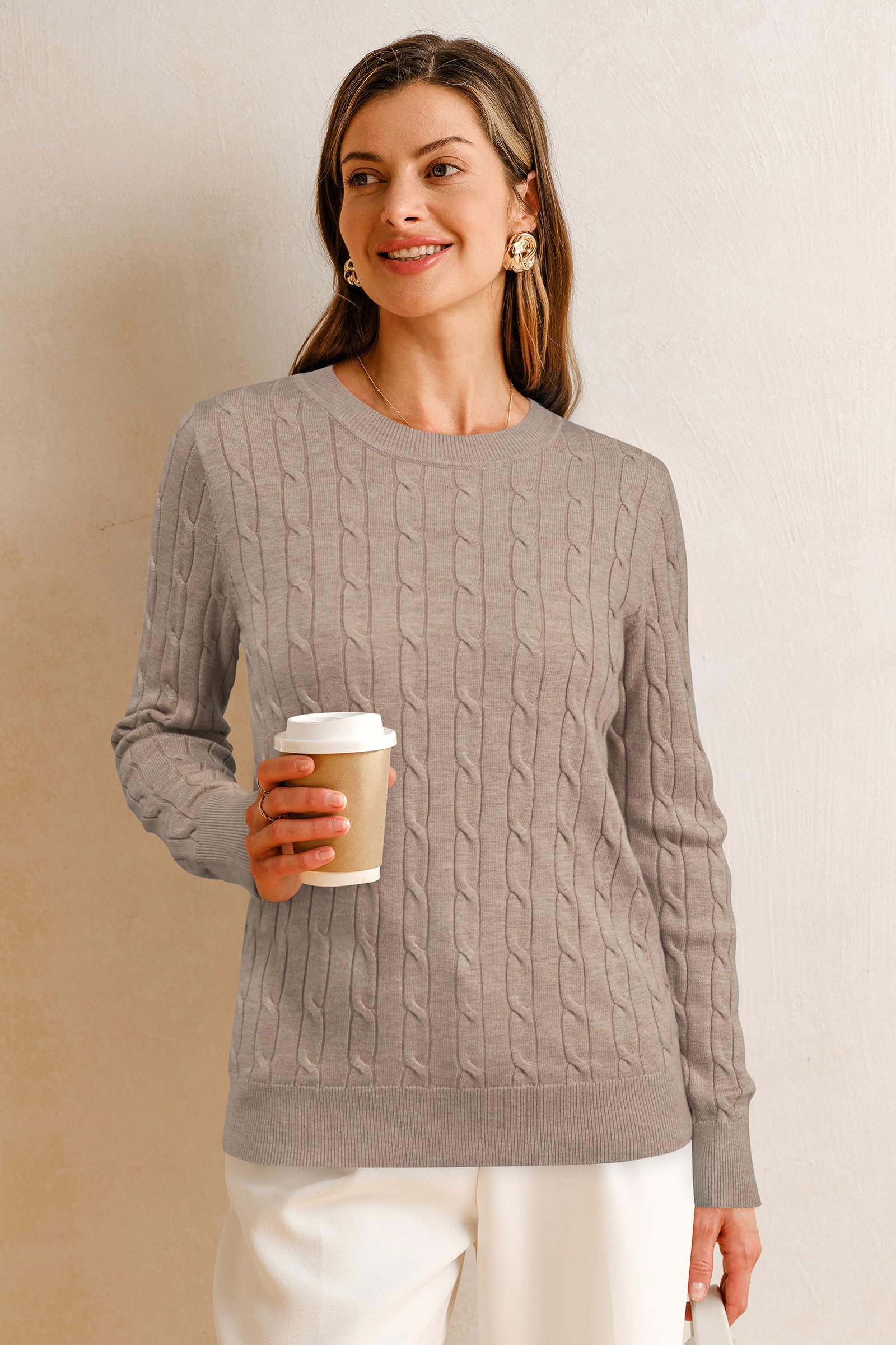 Features: Women's Classic Cable Knit Tops / Long Sleeve / Crew Neck / Loose Fit / Winter Layering / Elasticated Hem / Pullover Sweater