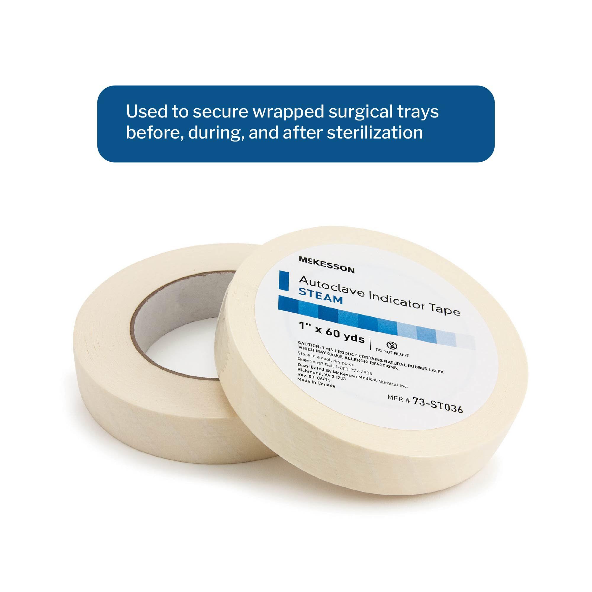 McKesson autoclave steam indicator tape is used to wrap surgical trays before, during and after sterilization