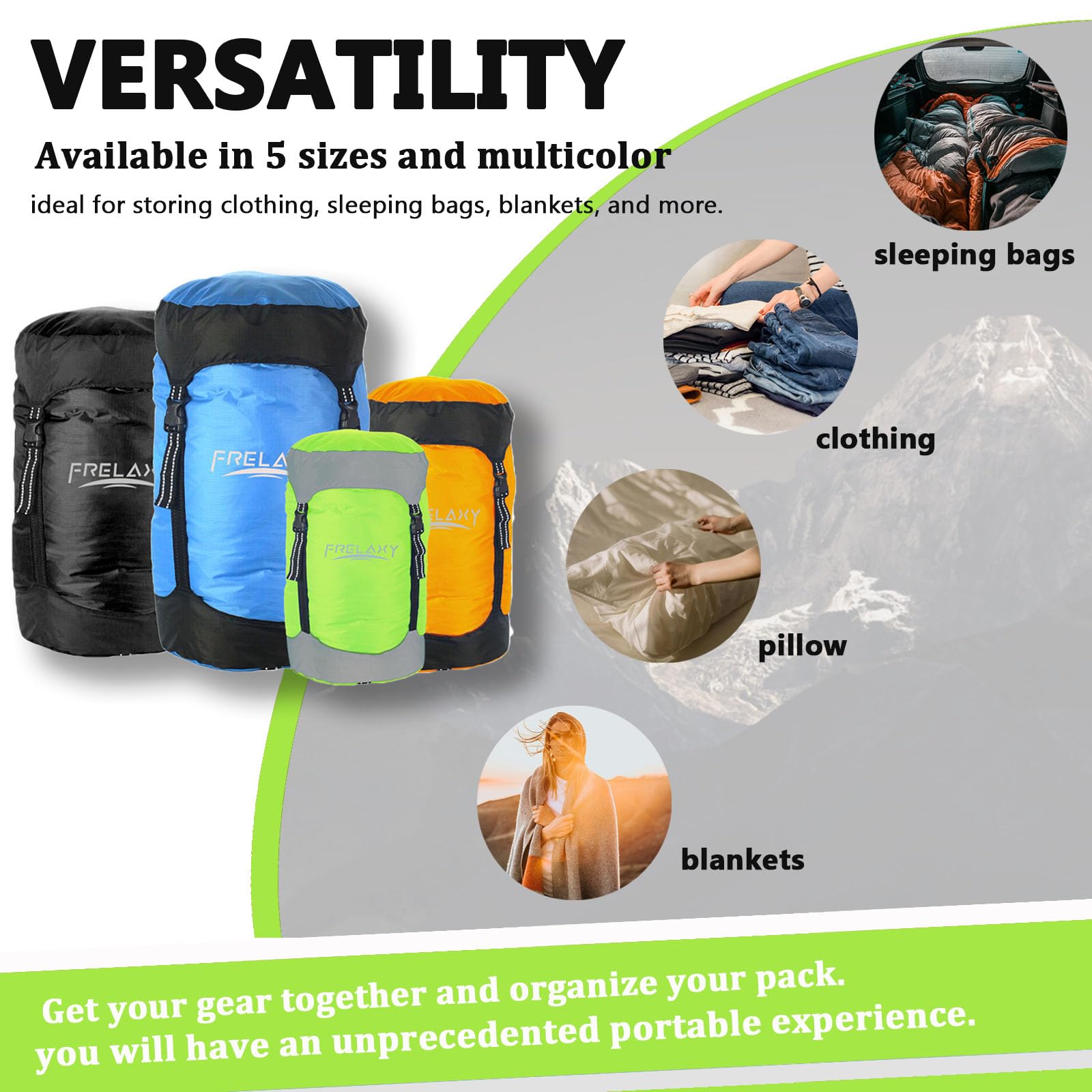SAVE 40% MORE SPACE: Frelaxy Compression Stuff Sack is an incredibly simple and practical solution to space-saving, they will give you more space to pack what you need and give you an unprecedented portable experience.