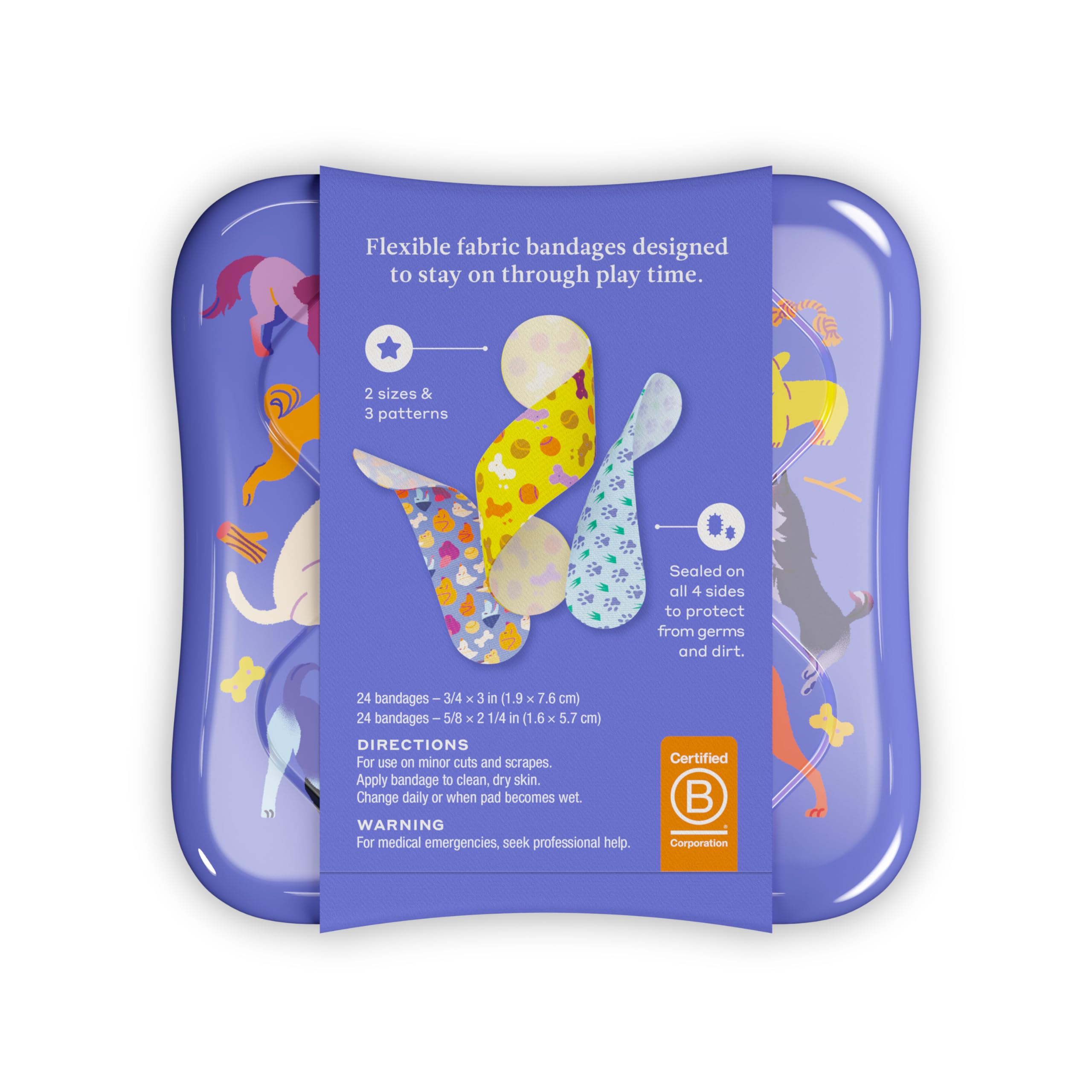 48 count flex fabric bandages in 2 kid-friendly sizes that move with your every move