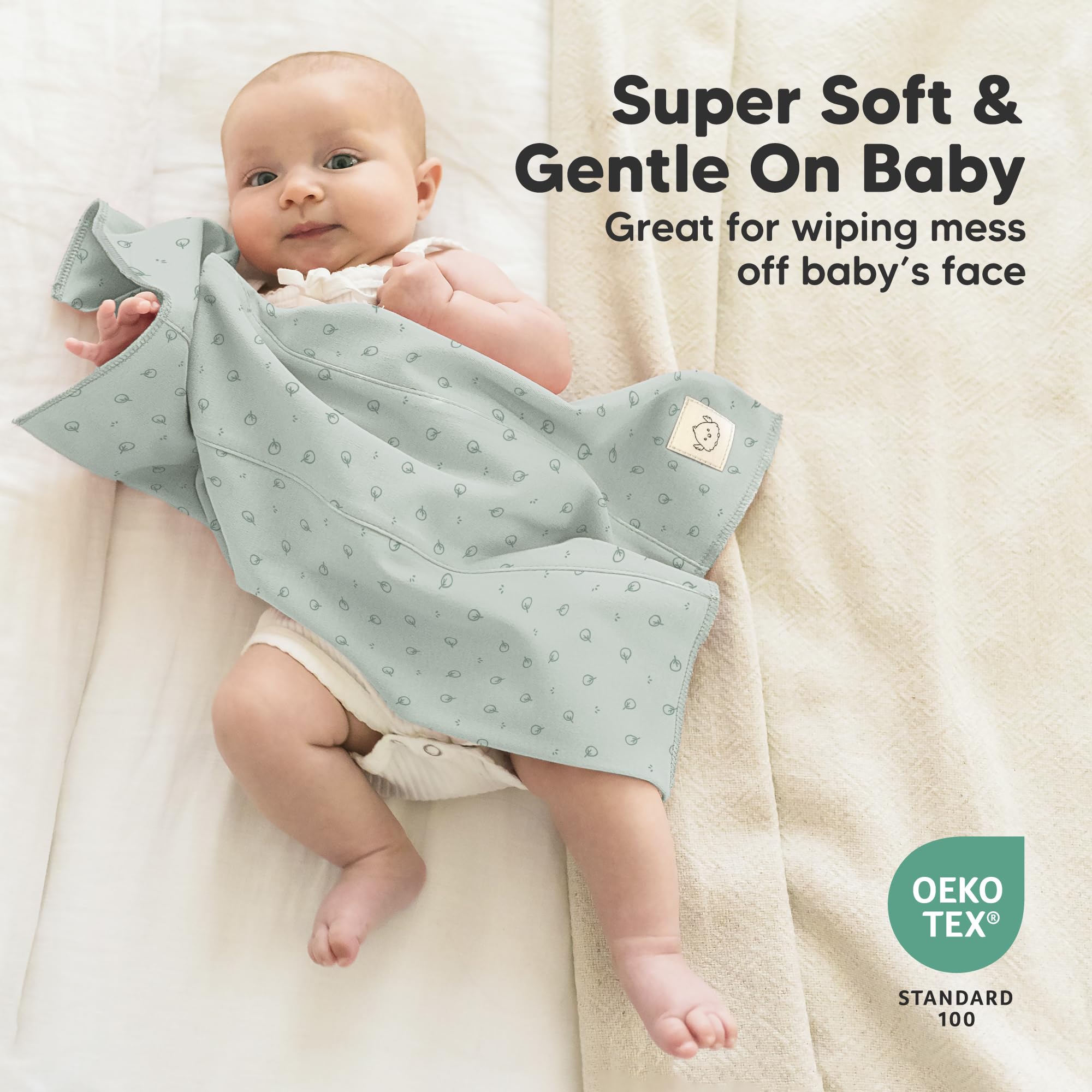 20" by 12" Perfectly Sized Burp Cloths – Enjoy a calming burping experience with the KeaBabies Shea Baby Burp Cloths. Made longer and larger, with double-layered ultra-soft organic cotton to help keep you mess-free.