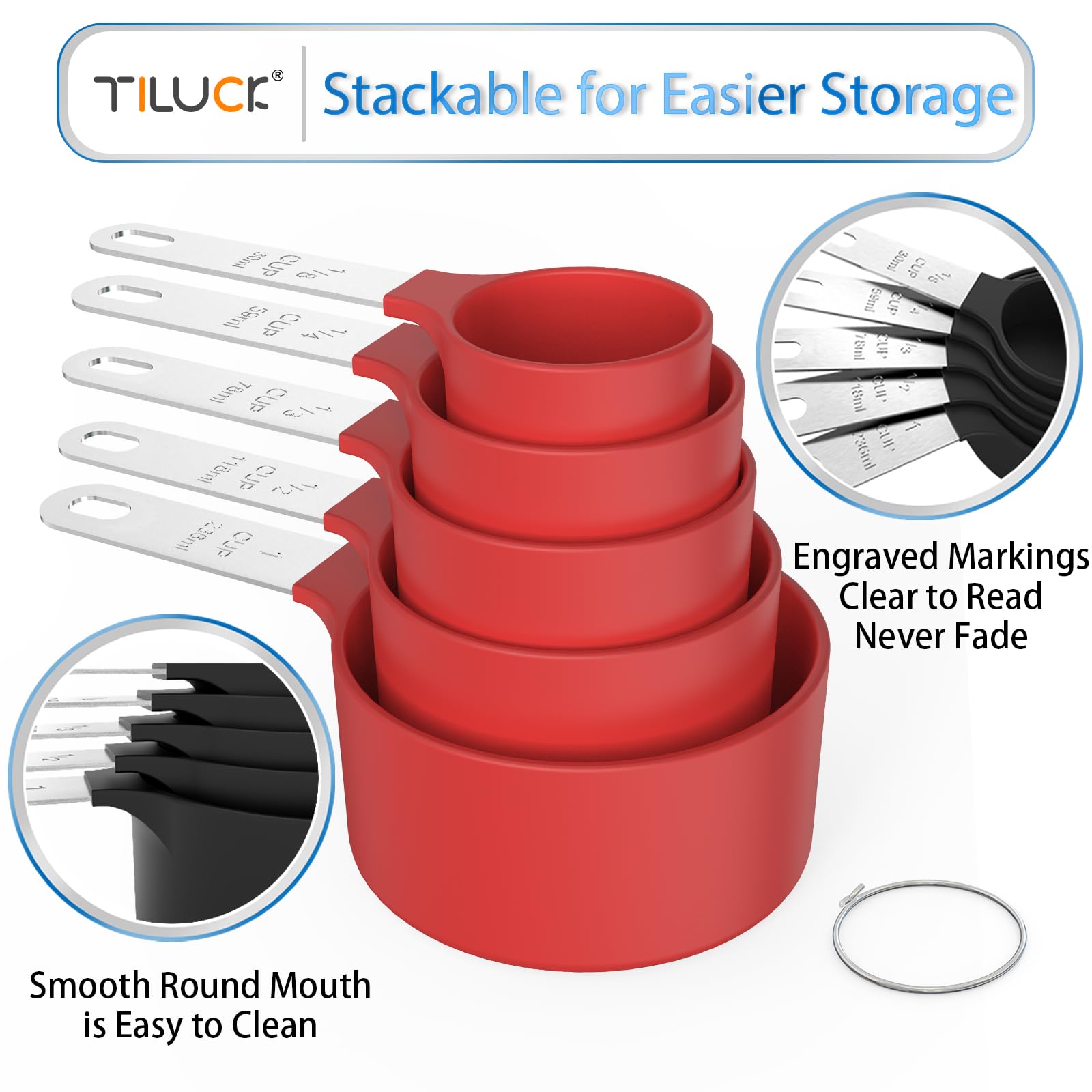 [Multiple Sizes]: Including 5 Measuring cups (1/8, 1/4, 1/3 , 1/2 , 1 cup), 5 Measuring spoons (1/4, 1/2 , 1 tsp, 1/2, 1 tbsp). Meet All Your Needs On Cooking And Baking