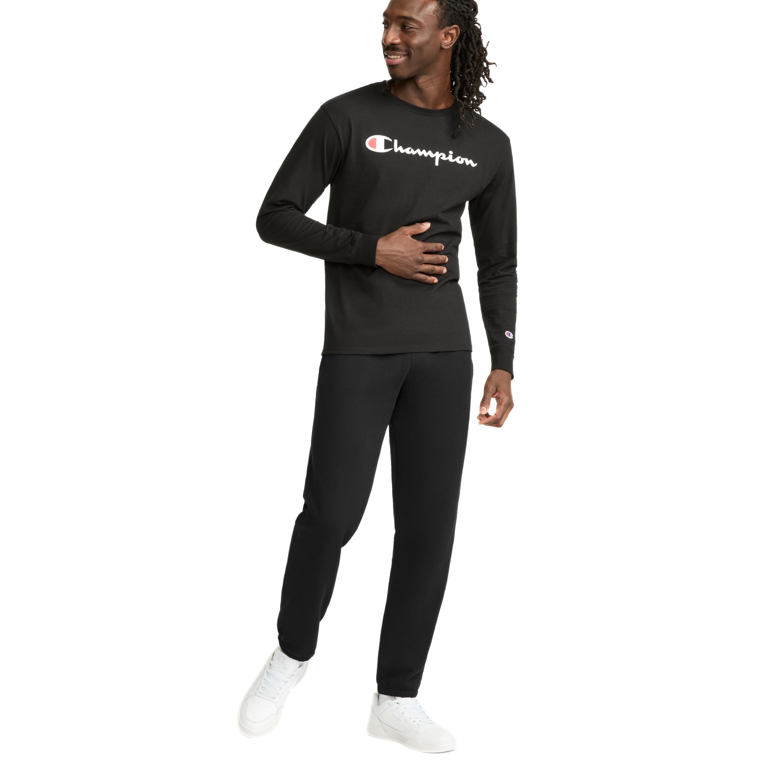 Description A STAPLE FOR ALL SEASONS. A good-to-go long-sleeve shirt is an ideal addition to your year-round wardrobe. Rock this Big & Tall men's long-sleeve T-shirt solo on a breezy night or layer it under your favorite Champion jackets and hoodies for styled warmth. This versatile tee has a soft, worn-in texture you'll love and the cut is made for a Big & Tall frame. The iconic C patch on the chest and sleeve gives that Champion look you trust. From red to black options, there's a look to match your every vibe.