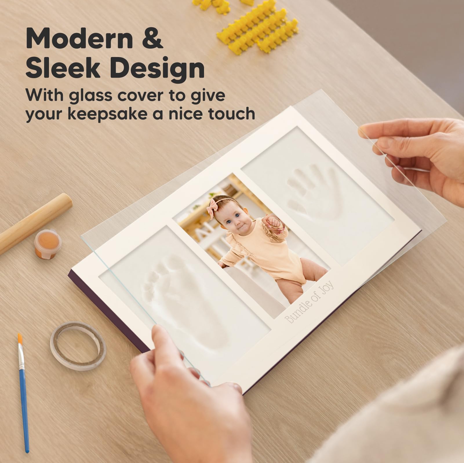 100% Safe Food-Grade Clay - Our baby picture frame features 100% baby-safe air-dry clay, perfect for preserving your baby prints. Our premium material ensures durability, the baby hand and footprint maker will look flawless for years to come.