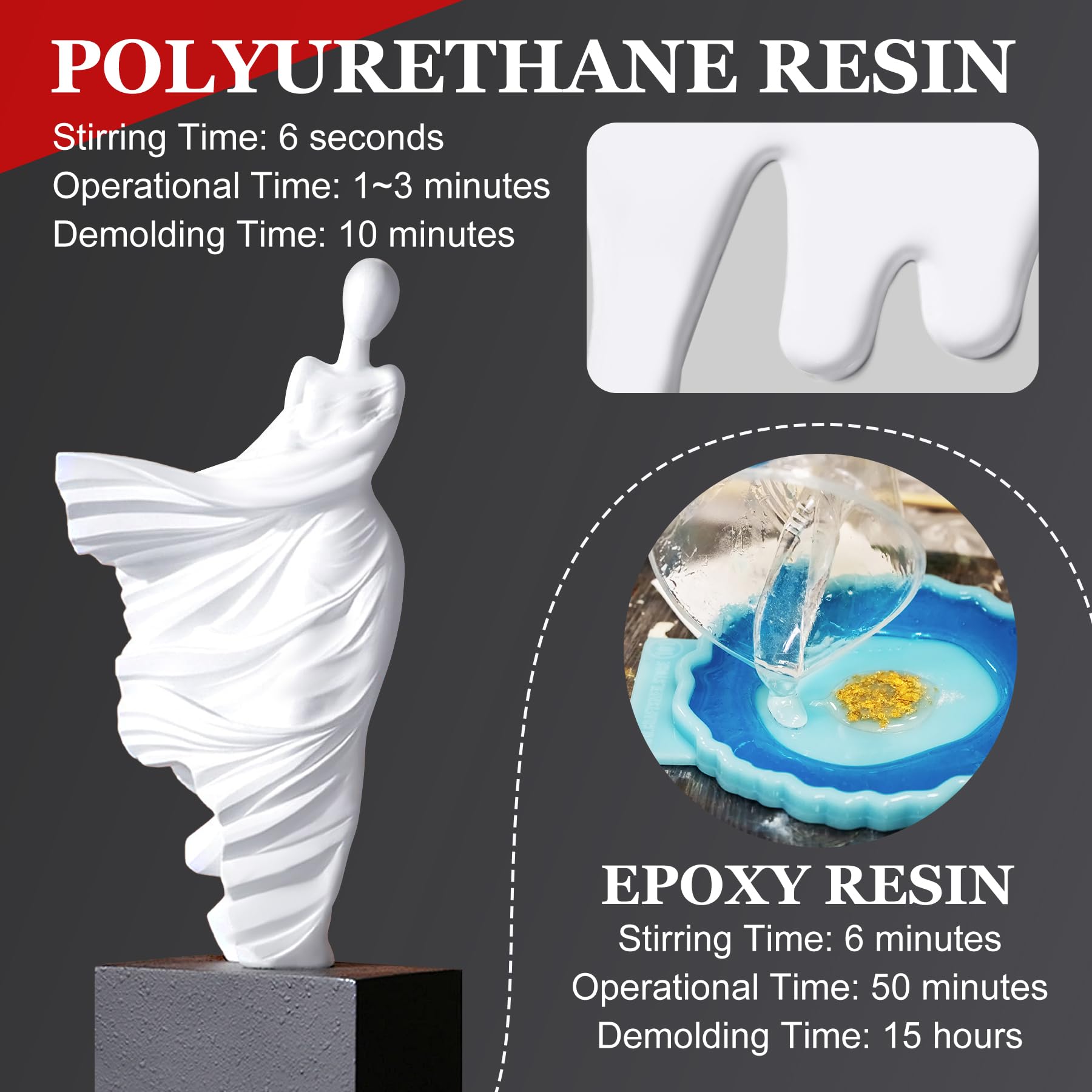 RAPID CURING CASTING RESIN WHITE: Our polyurethane resin β cures rapidly from liquid to opaque white resin in just 10 minutes, reaching a hardness of 95D. It has a working time of only 30 seconds (Tip: cool Part A and Part B in the fridge in advance to extend working time), helping you save more time to create more resin crafts. Compared with epoxy resin, our polyurethane casting resin cures much faster and features an opaque white surface.