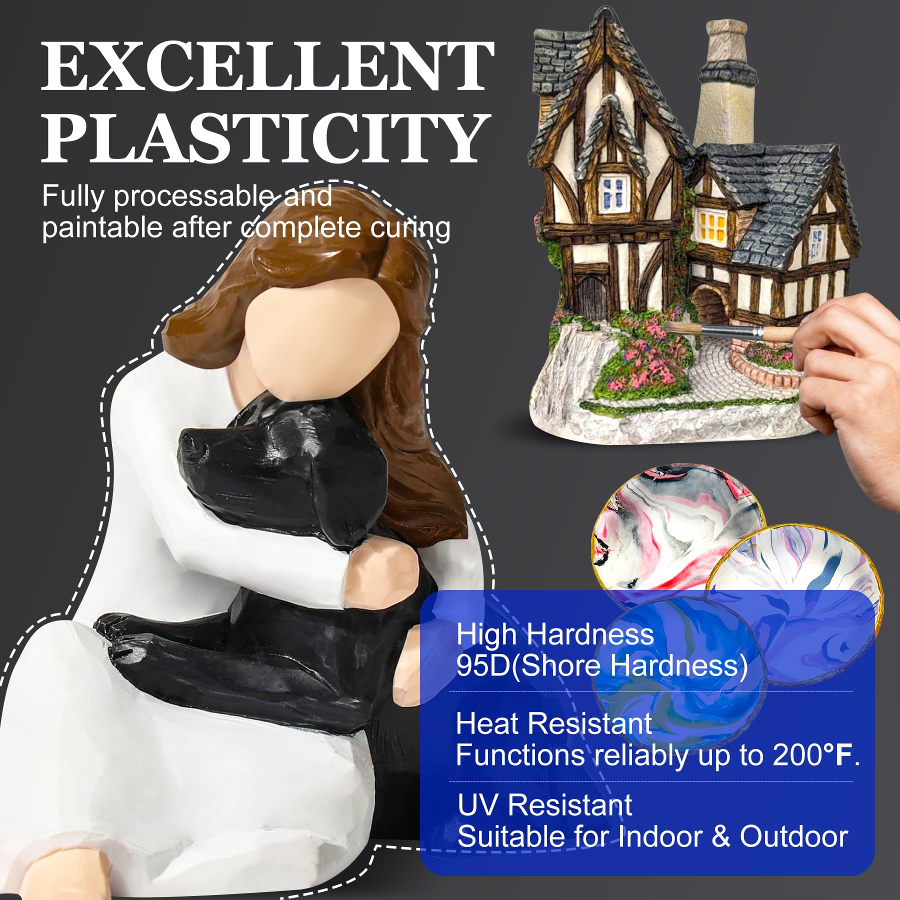 HIGH HARDNESS & HEAT RESISTANT: Our polyurethane casting resin has low odor & Low Viscosity, Self Degassing, minimal shrinkage and high precision, After full curing, the castings are lightweight, tough, machinable, and paintable . The 95D hardness ensures long-lasting durability, Functions reliably up to 200Β°F and Suitable for Indoor & Outdoor. so your resin crafts can maintain their shape and appearance for a long time.
