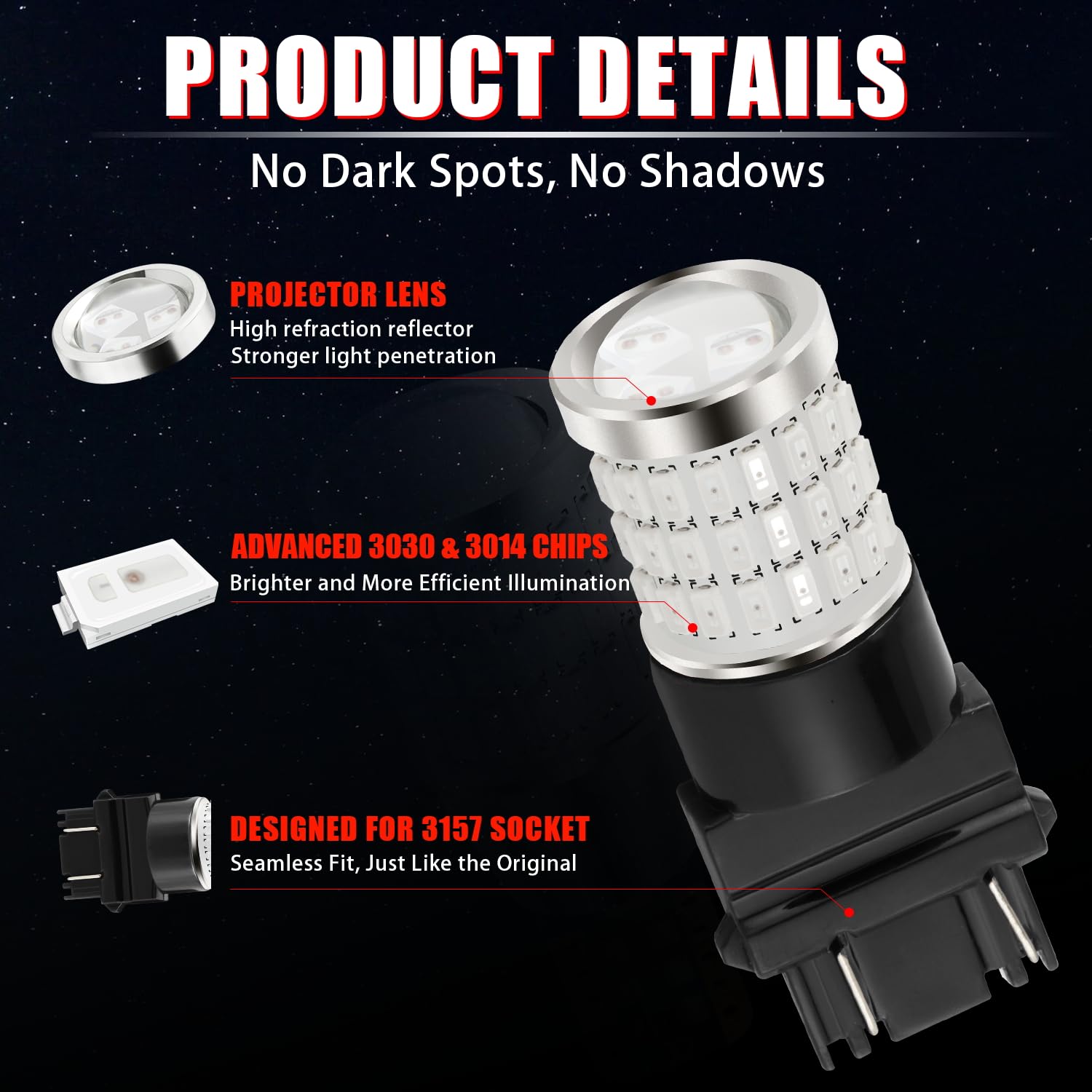 (Set of 2 Bulbs) 54SMD 3014 & 3SMD 3030 high brightness chips per bulb, Working Voltage: 9v-30v (fit 12V, 24V vehicles).