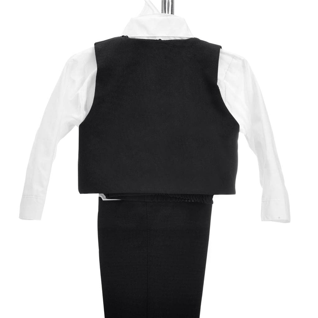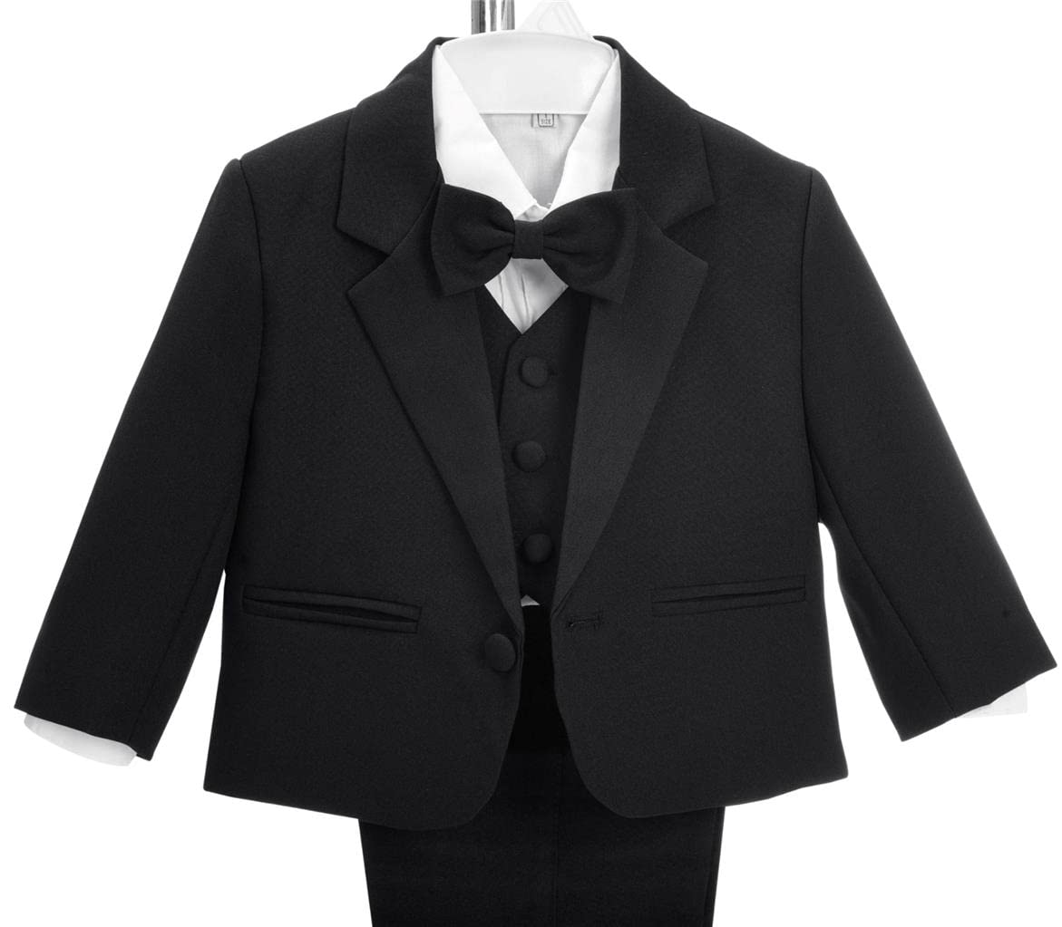 [5 Pieces Little Boys Tuxedo Suit Set] This smart 5-piece gentleman suit set formal outfit includes blazer jacket, white dress shirt, adjustable bow tie, vest and pants. Made of luxurious polyester and cotteon fabric. Breathable and comfortable.[Colors] Black, White, Ivory, Light Gray, Silver Gray, Royal Blue, Khaki Beige, Dark Navy Blue, Charcoal Gray, Burgundy Red, Iron Gray. (NOTE: Product color may slightly vary due to the lighting of photo shooting.)