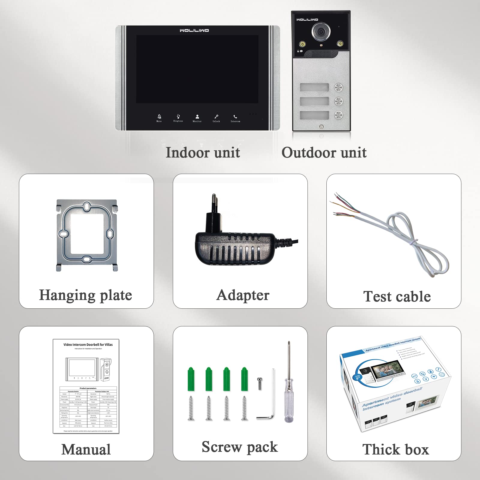 【Multi-Function】: 52 kinds and rotating ringtones for your choice, display color/volume/brightness adjustable, support indoor call, one-touch unlock function. Waterproof, high temperature resistant, suitable for all seasons, outdoor unit can be customized with door number, easy to distinguish each room.
