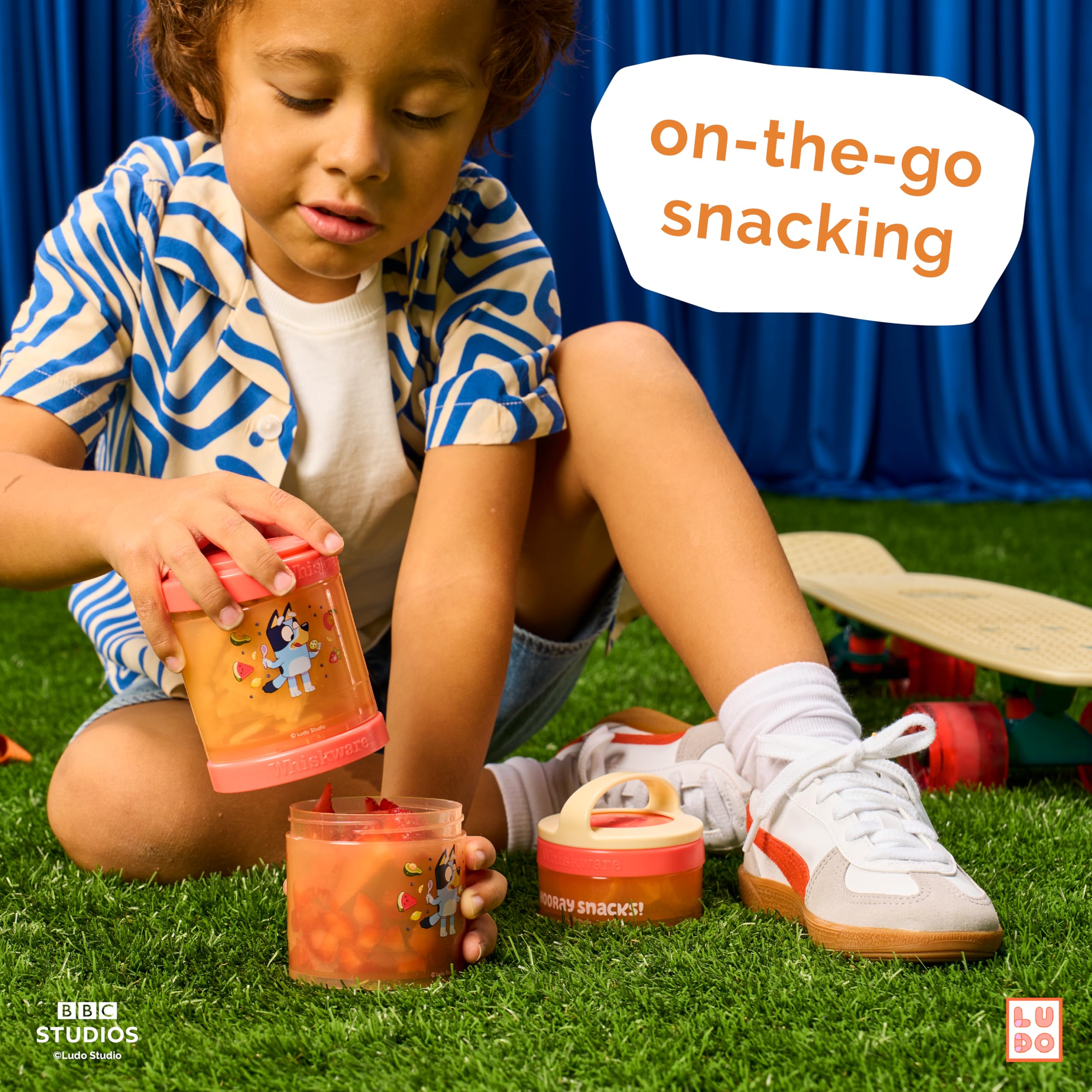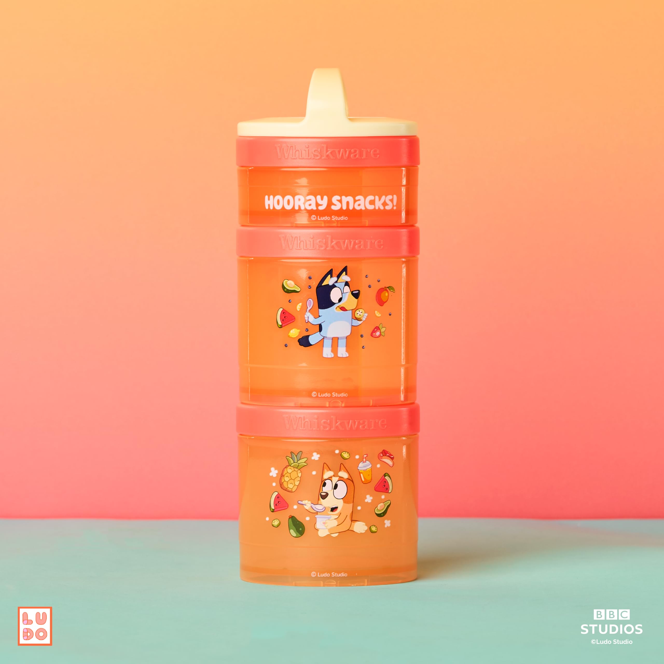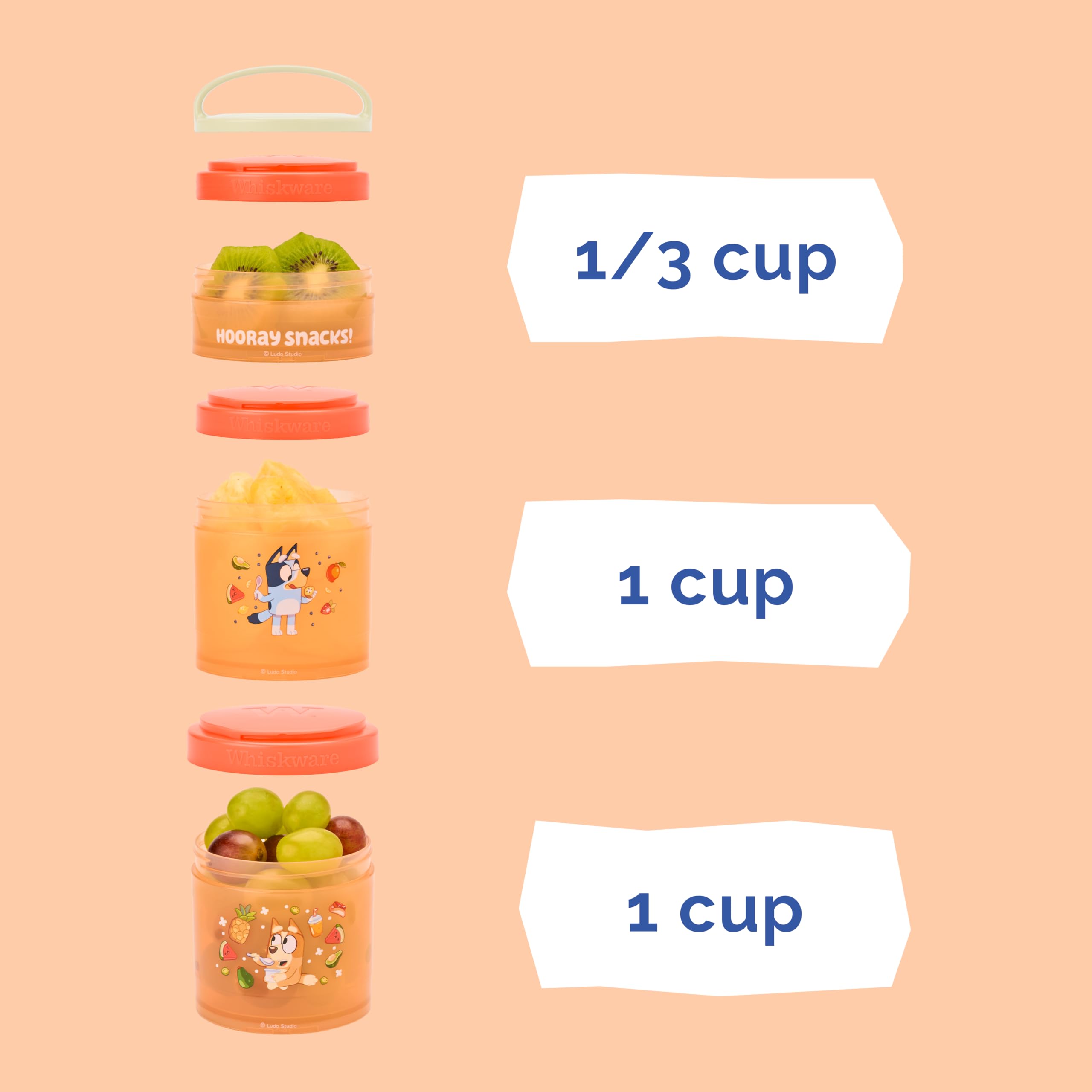 Durable, stackable snacking containers designed to make eating easy, fun, and mess free
