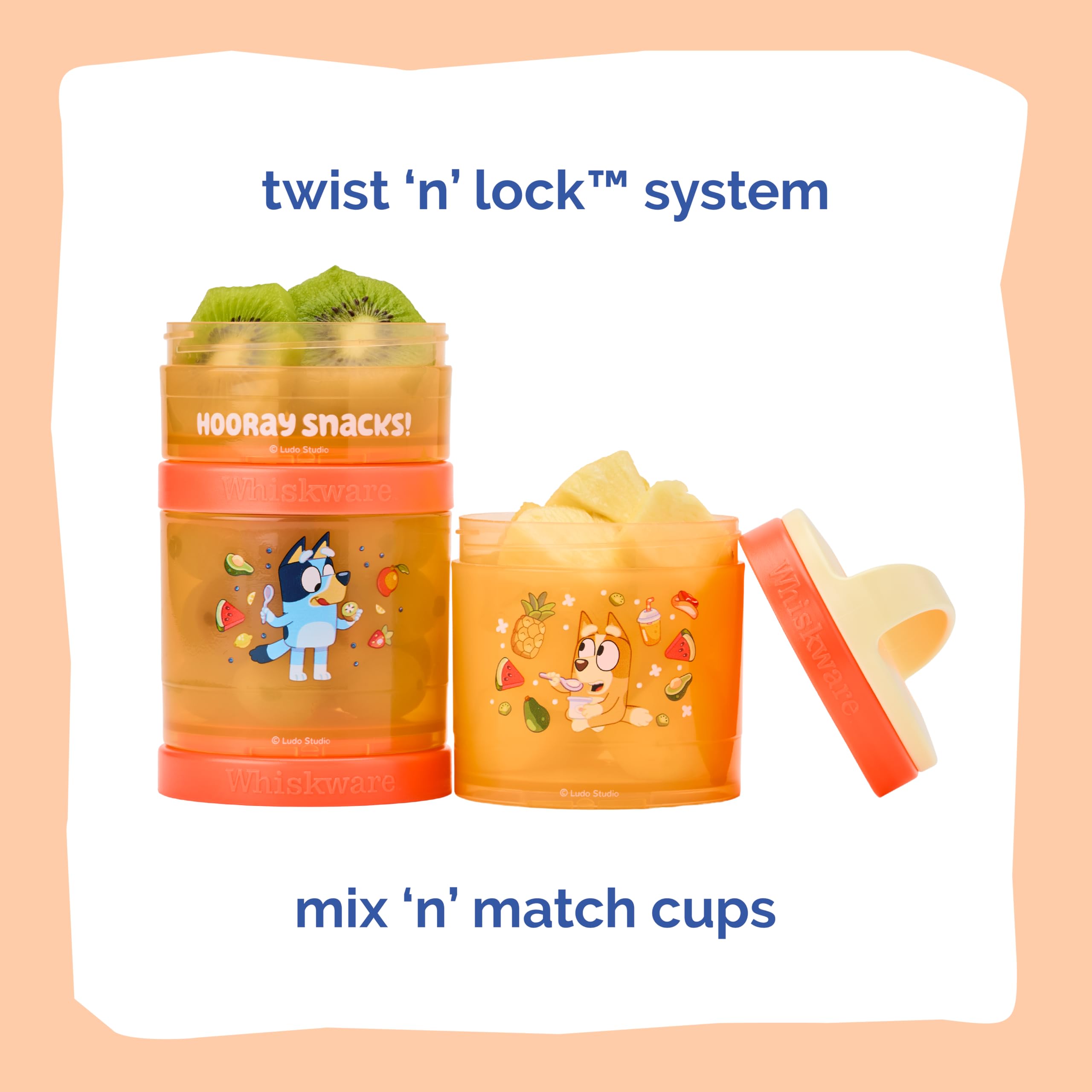 Here to turn snack time into playtime. Whiskwareβs durable, low-mess snack jars have a Twist βnβ Lockβ’ system that not only lets you pack and go in a flashβbut it also lets you mix and match all your favorite characters! Designed for little hands to hold, our snacking containers fit in cupholders, diaper bags, backpacks and moreβmaking them an awesome food storage choice for daycare, school, and on-the-go airplane or car travel. But most of all, because we care about safety and convenience, Whiskware snacking containers are BPA free and dishwasher safe for worry-free use and cleaning. So if you want healthy snacking to be simple (and loads of fun), donβt miss these containers!