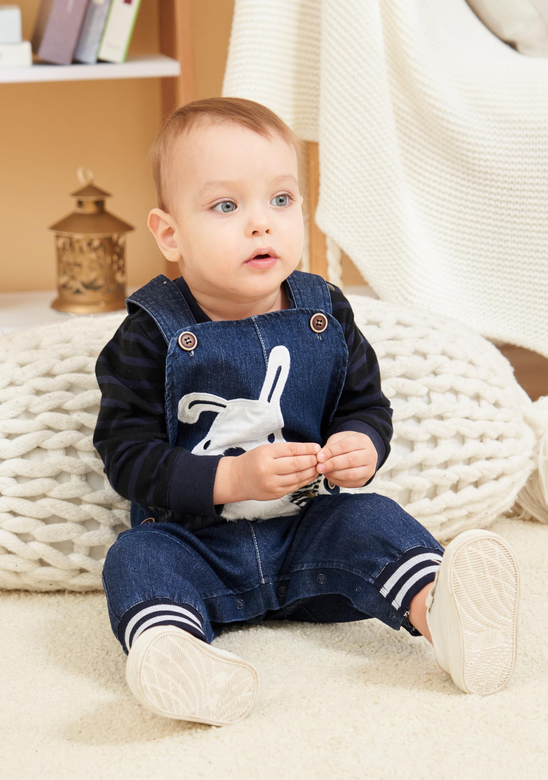 Description LvYinLi US Baby Boy Clothes Boys' Romper Jumpsuit Overalls Stripe Rompers Sets Include: 1pc Jumpsuit (3-9 months)- (9-15 months)-(2years) Jumpsuit Length: Full Length Material: Polyester, Cotton. Suitable For Age:3-9 months;Suitable for height:27.6 inch;weight:16.5 lb;T-shirt Length:13.9 inch;T-shirt Chest:19.69 inch;Sleeve length:9.84 inch;shoulder width:7.88 inch;Overalls Length:22 inch;Overalls Chest:17.3 inch;Waistline:20.47 inch Suitable For Age:9-15 months;Suitable for height:31.5 inch;weight:23.1 lb;T-shirt Length:14.17 inch;T-shirt Chest:20.47 inch;Sleeve length:10.24 inch;shoulder width:8.66 inch;Overalls Length:23.19 inch;Overalls Chest:18.08 inch;Waistline:22.05 inch Suitable For Age:15-20 months;Suitable for height:35.4 inch;weight:27.5 lb;T-shirt Length:15.35 inch;T-shirt Chest:21.26 inch;Sleeve length:10.63 inch;shoulder width:9.45 inch;Overalls Length:23.97 inch;Overalls Chest:18.86 inch;Waistline:23.62 inch