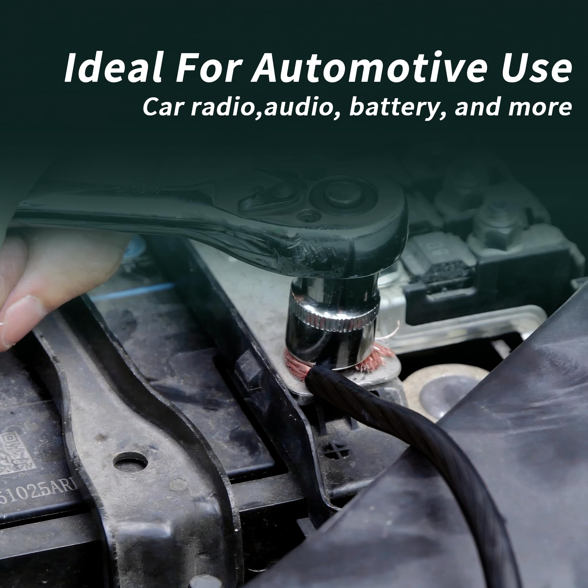 Wide Application:It can be used as power wire, ground wire, car audio wire, welding wire and other purposes. It is widely suitable for various equipment such as automobiles, solar energy equipment, ships, RVs, motorcycles, golf carts, lawn and garden equipment,competent for both indoor and outdoor use