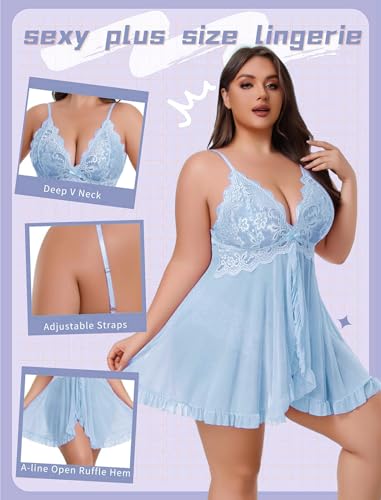 【High-quality Material】This plus size lingerie is made of 95% polyester and 5% spandex. Fabric is very soft and the lace craftsmanship is beautifully detailed.