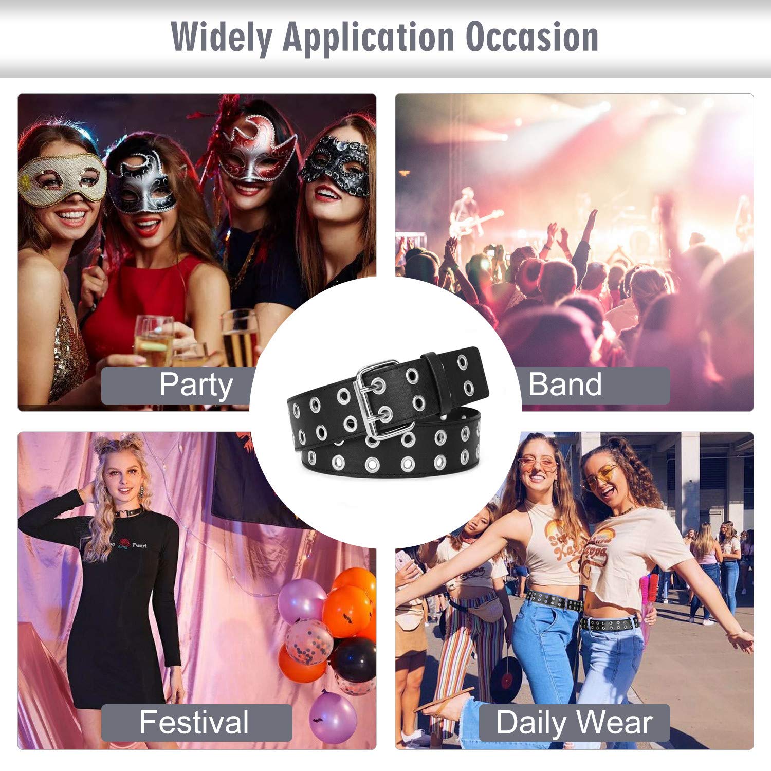 Women Belts for Any Occasions: The double grommet belt is great for any jeans,pants,dresses with 2 rows of grommets, rather punk rock & cute look for men or women. The studded design is suitable for both daily use and costume parties, a great gift women belt for Halloween,Christmas,Motherβs day, cosplay and other activity.