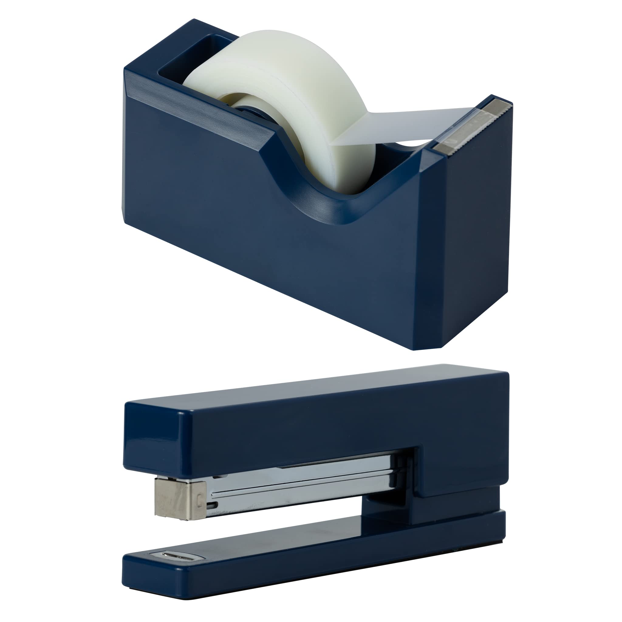 Stapler Size: 6 x 2.5 x 1.125 inches | Tape Dispenser Size: 4.5 x 2.5 x 1.75 inches