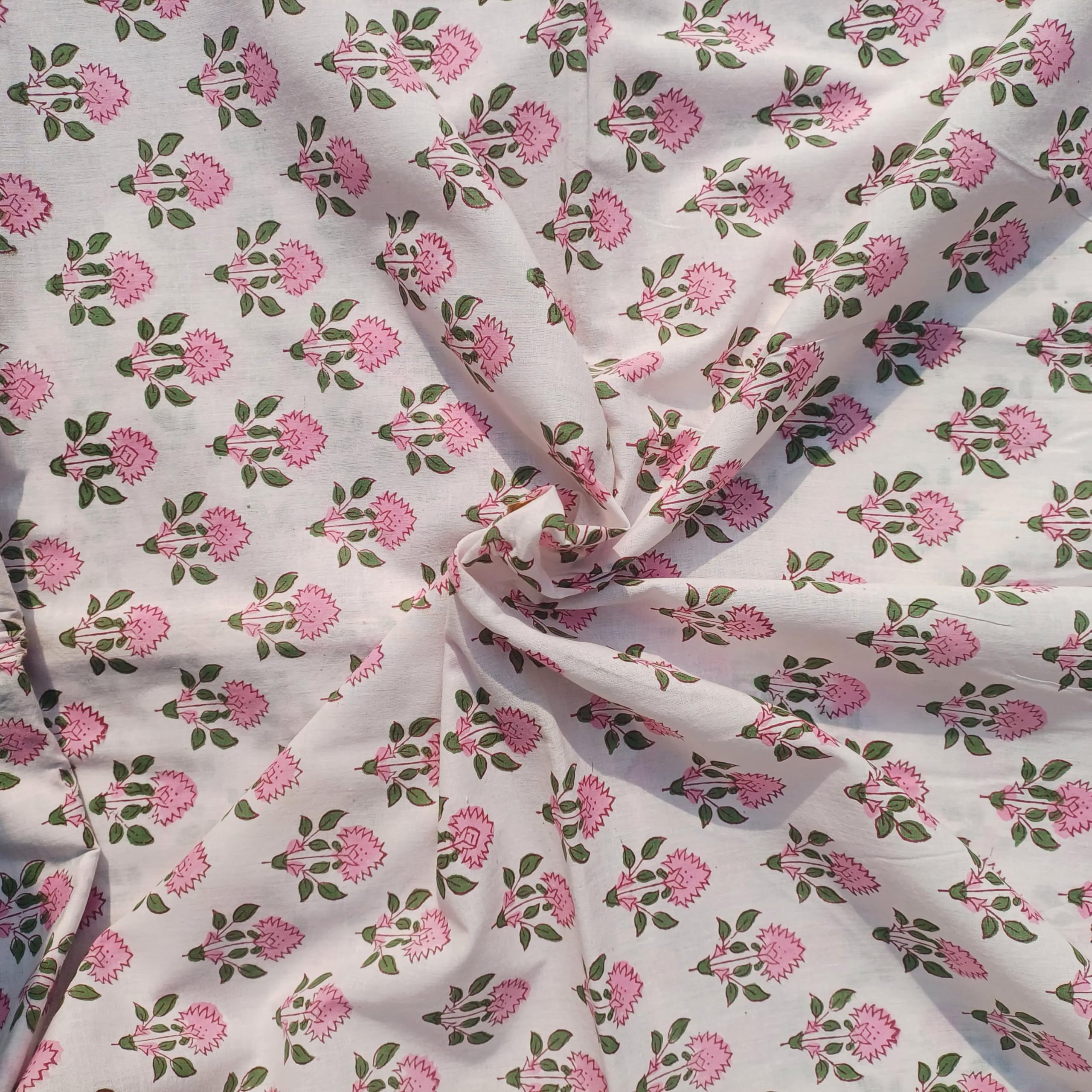 Hand Block Printed: Each design is carefully carved onto wooden blocks and printed by hand, giving the fabric a unique and authentic touch.