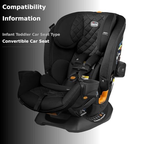 The OneFit Max ClearTex All-in-One Car Seat fits your child, vehicle and life β maximizing child comfort from birth through booster. OneFit Max includes the Chicco-exclusive LeverLock Self-Tensioning Lock System for forward-facing car seat installation. OneFit Max easily transitions from a rear-facing harness baby car seat to forward-facing toddler car seat to booster car seat as your child grows. With its slim car seat design and space-saving features, this all-in-one car seat takes up less space in the backseat without compromising comfort. The two CupFolders conveniently fold in when not in use to maximize space. OneFit Max features 20% more rear-facing legroom (compared to other OneFit car seats), 8 recline positions and 10 headrest positions for optimal child fit and comfort as they grow. The flex-forward crotch buckle stays out of the way for easy child loading and harness pockets keep straps and buckles contained until ready for use. The quick-secure magnetic chest clip offers easy in and out without the fuss. For rear-facing car seat installation, OneFit Max includes premium LATCH connectors and a SuperCinch force multiplying tightener. RideRight bubble levels work with the 8-position ReclineSure leveling system to provide improved vehicle fit. For forward-facing car seat installation, OneFit Max features the innovative LeverLock Self-Tensioning Lock System. LeverLock provides a secure, stable forward-facing vehicle seat belt install with minimal effort. Easily access the LeverLock compartment by unsnapping the seat pad. Open and rotate the LeverLock handle to release the handle. Route, buckle and thread the vehicle seat belt using the easy-access belt guides, then close the handle. ClearTex products meet federal car safety flammability standards without flame retardant chemical treatments and are GREENGUARD Gold Certified for low chemical emissions, contributing to healthier air quality around your child. OneFit Max includes a steel-reinforced seat shell and sculpted EPP energy-managing foam. A removable body support for newborns 5-11 lbs makes the OneFit Max All-in-One Convertible Car Seat ready to use from day one. Featuring Advanced Side Impact Protection (ASIP), OneFit Max is engineered to meet the Federal Motor Vehicle Safety Standard FMVSS 213a β Side Impact.